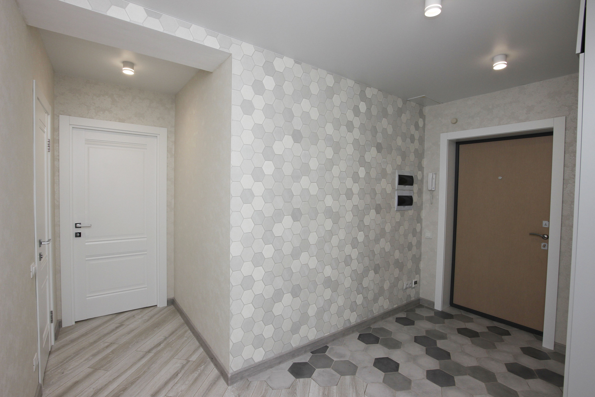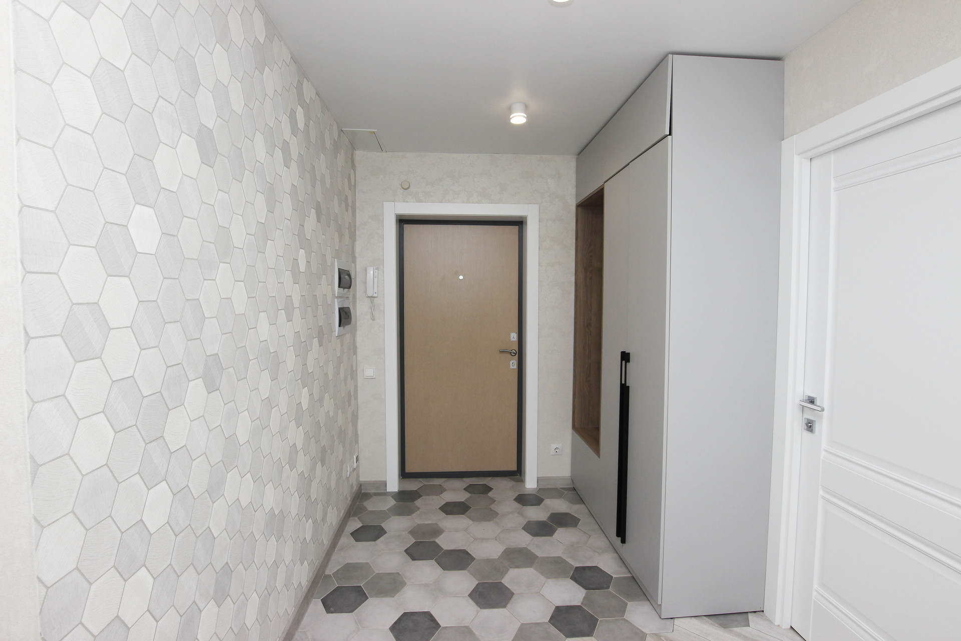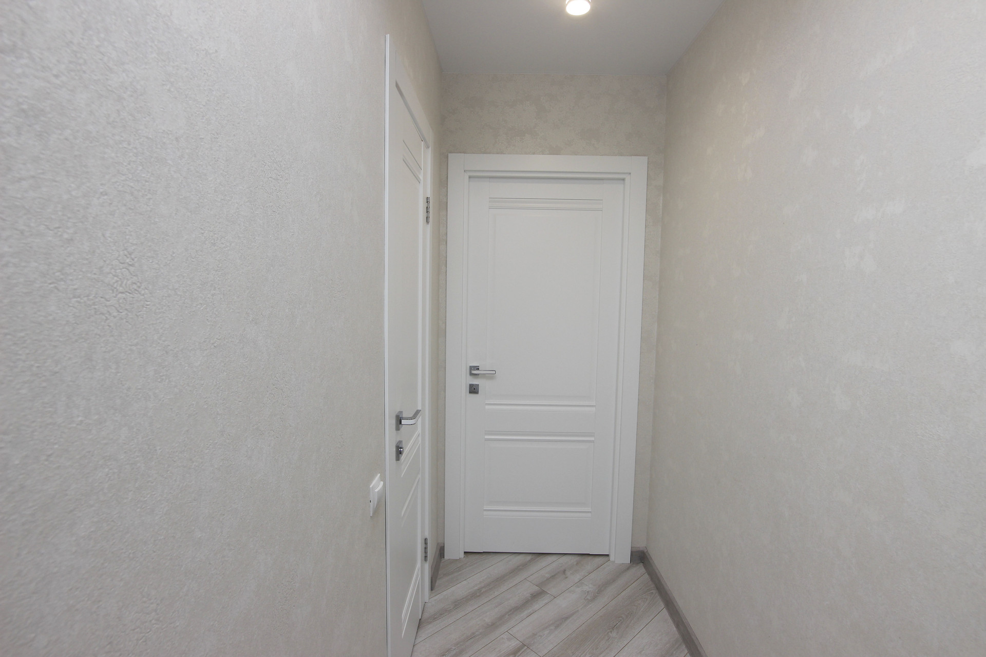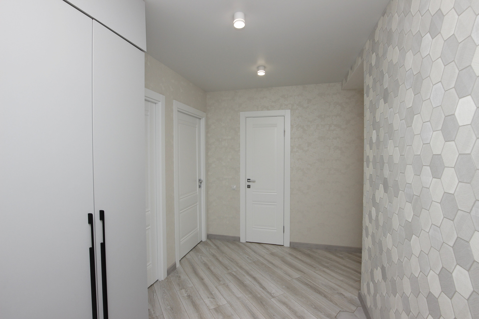Коридор 11м2 с удобным встроенным шкафом и теплым полом. По всей квартире полы ламинат.