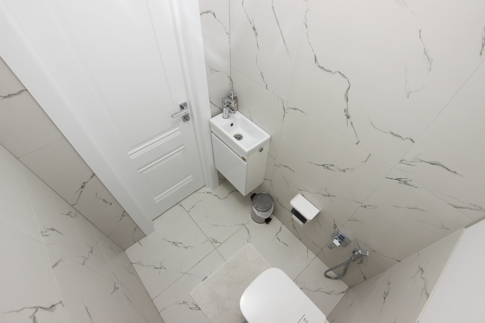 Туалет 2м2 со скрытым шкафом и водонагревателем.