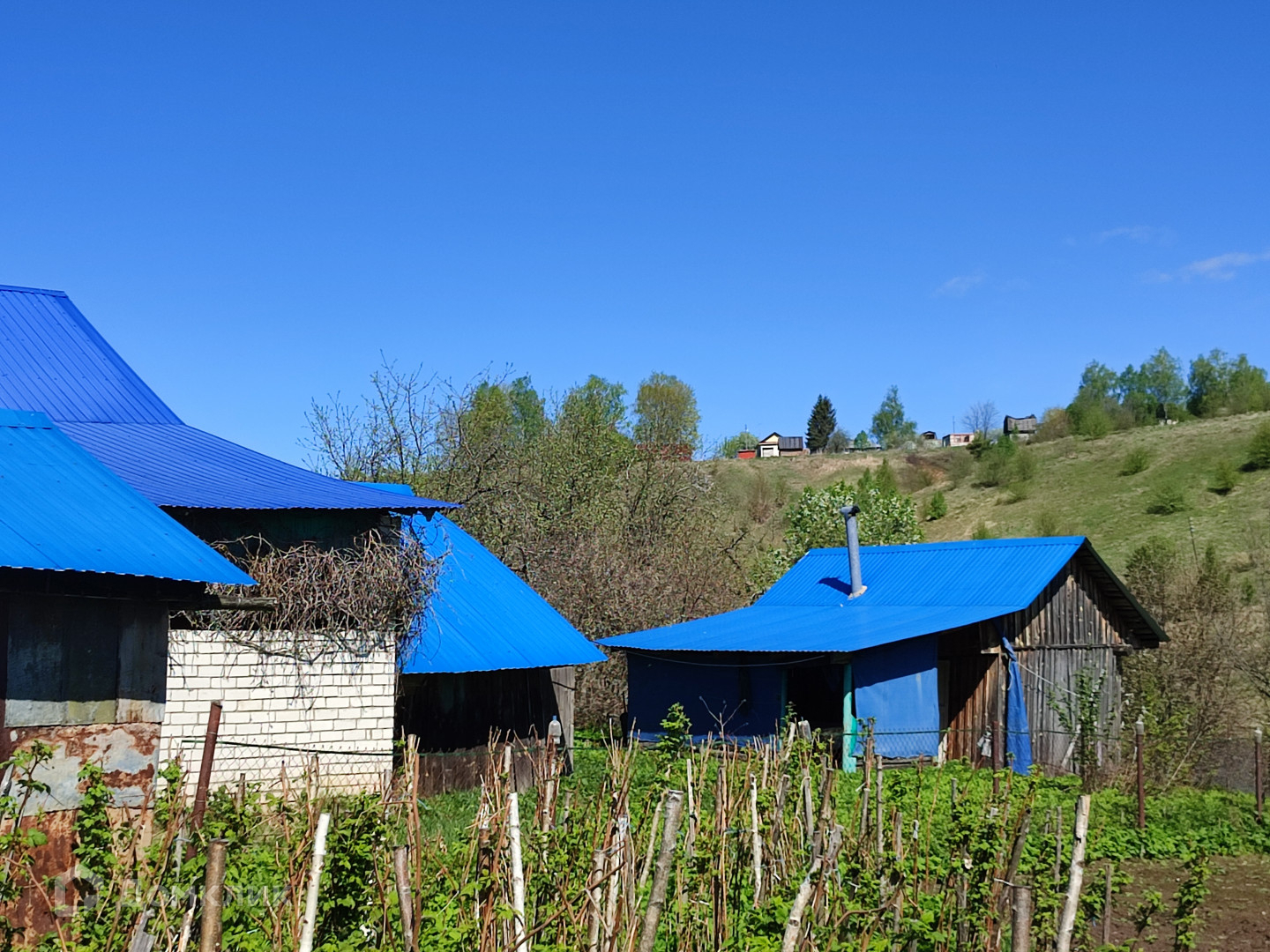 На территории есть  баня, гараж.  Крыши у дома, двора, бани, гаража  покрыты профнастилом.