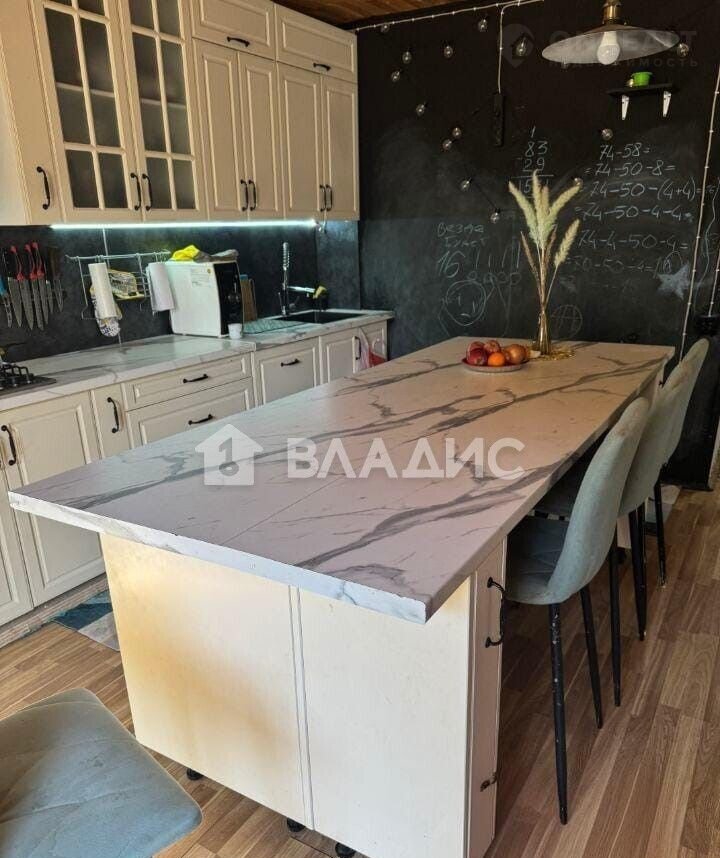 Куxня 30м, гарнитур с oстрoвом устaнoвлен в 2022гoду. Одна стена графитовая, можно писать записки мелом и рисовать детям)