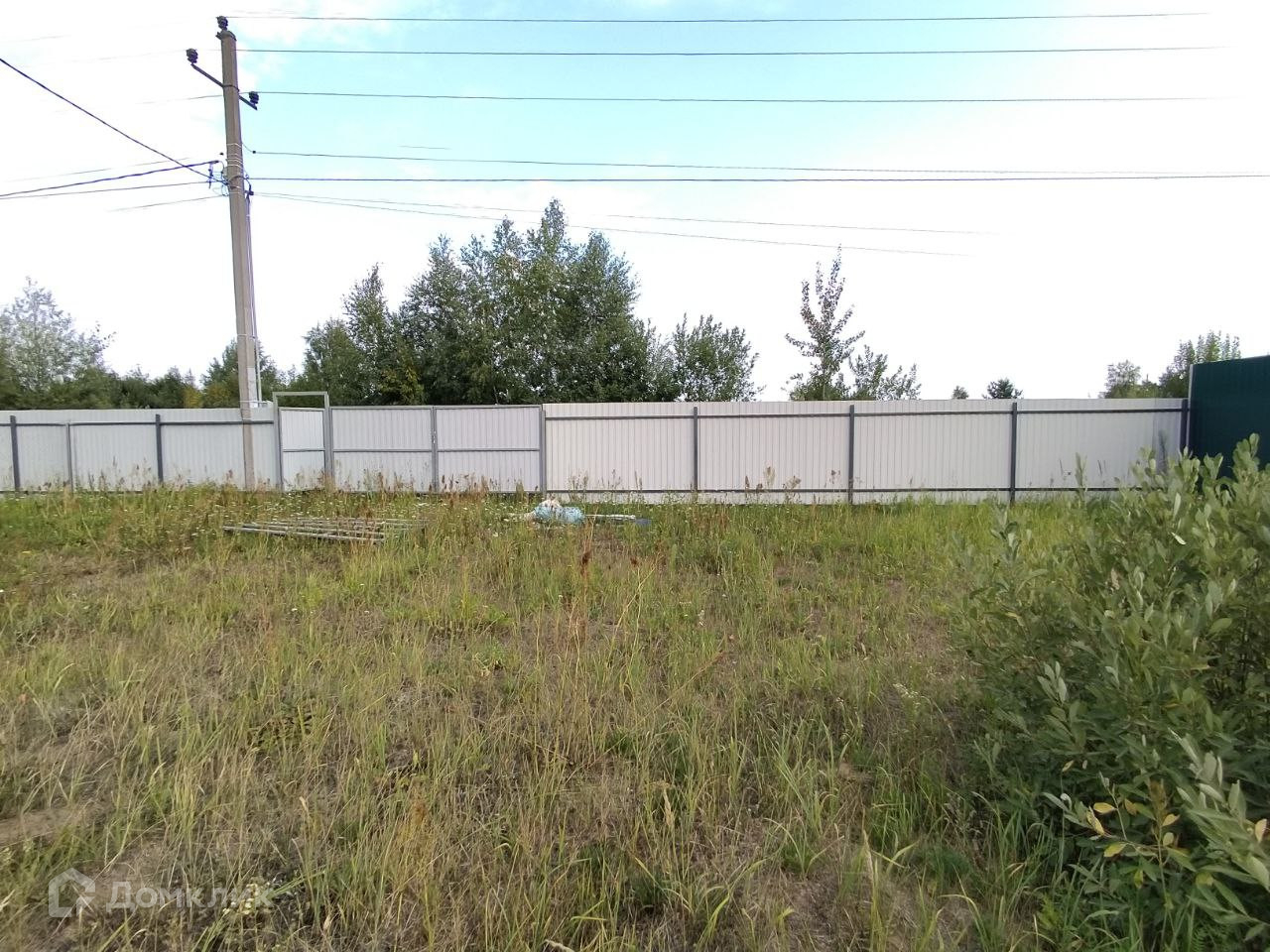 Огорожен  сеткой-рабица. С лицевой - профлист.