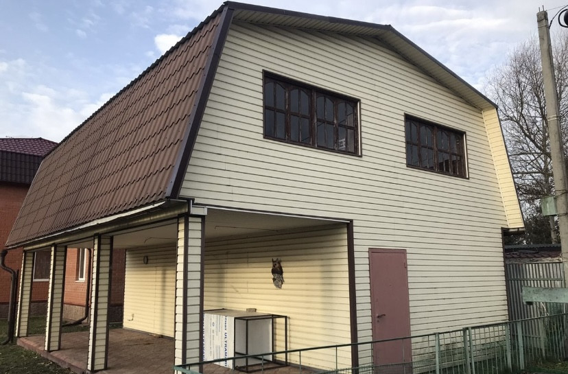 На первом этаже навес -веранда, для отдыха на свежем воздухе, и большой сарай, отдельный вход на второй этаж, где большая комната.