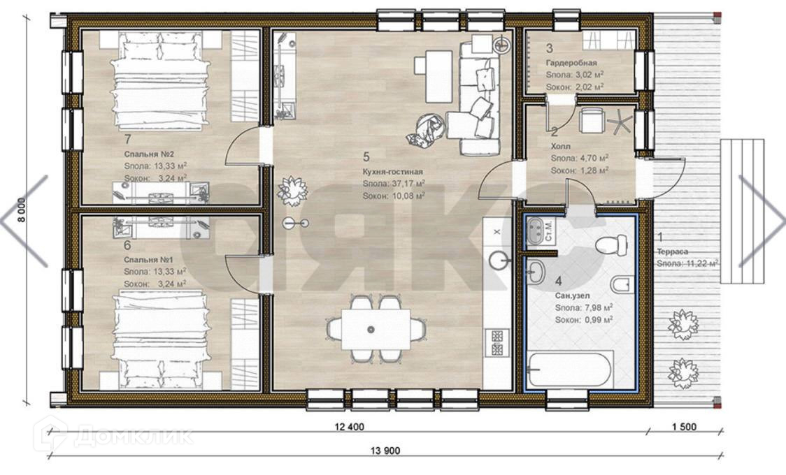 Дом теплый и уютный! Планировка дома прилагается в разделе фото - просторная терраса 12 м2, возможно собираться большой компанией на свежем воздухе. Кухня-гостиная 37 м2 с панорамным остеклением - достаточно места, чтобы собираться всей семьей. Также две изолированные комнаты, холл с выходом в гардеробную и сан. узел.