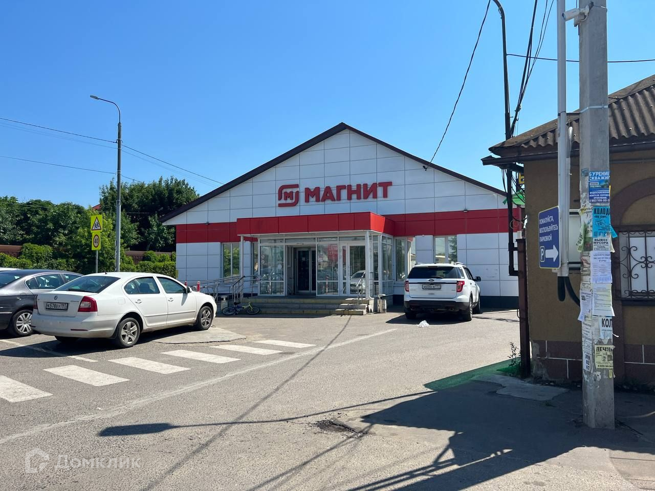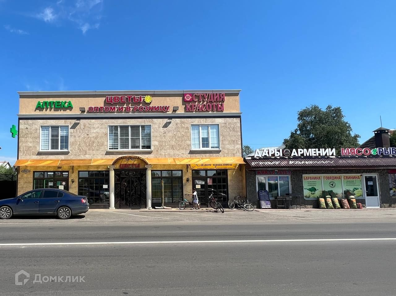 На въезде стоит продуктовый магазин, аптека и салон красоты.