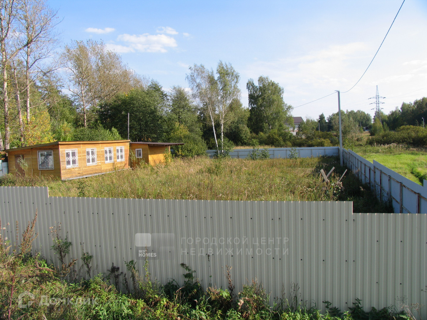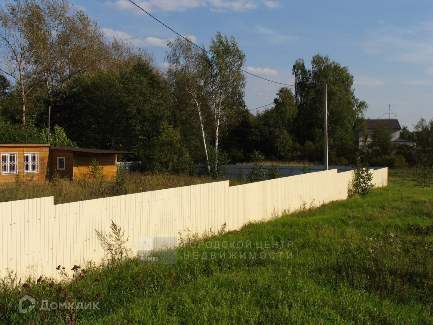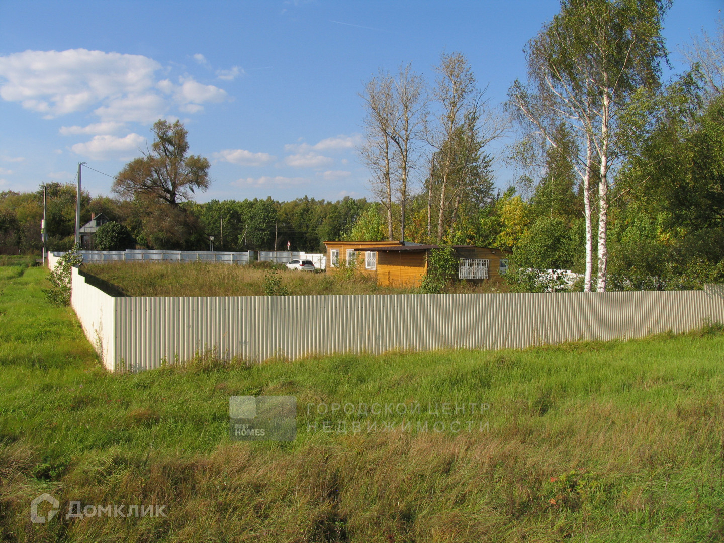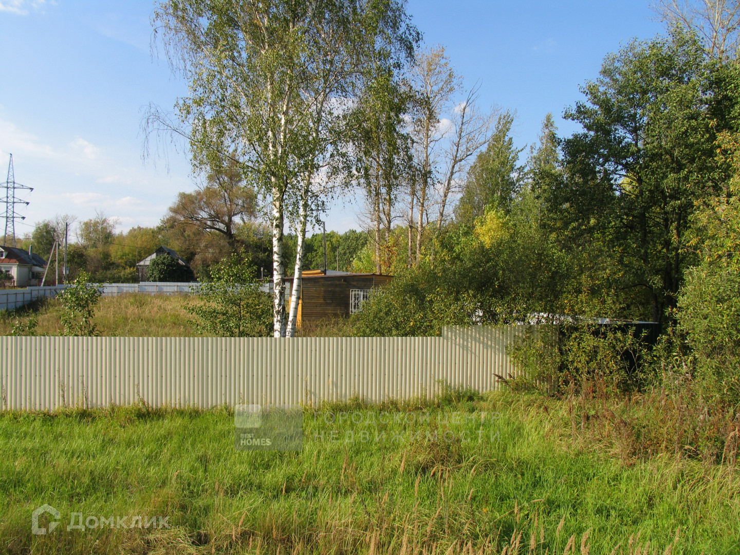 Сухой участок правильной прямоугольной формы, ближе к квадрату, огорожен забором из профлиста. Особенностью и большим достоинством является то, что участок с трех сторон не граничит с соседями.