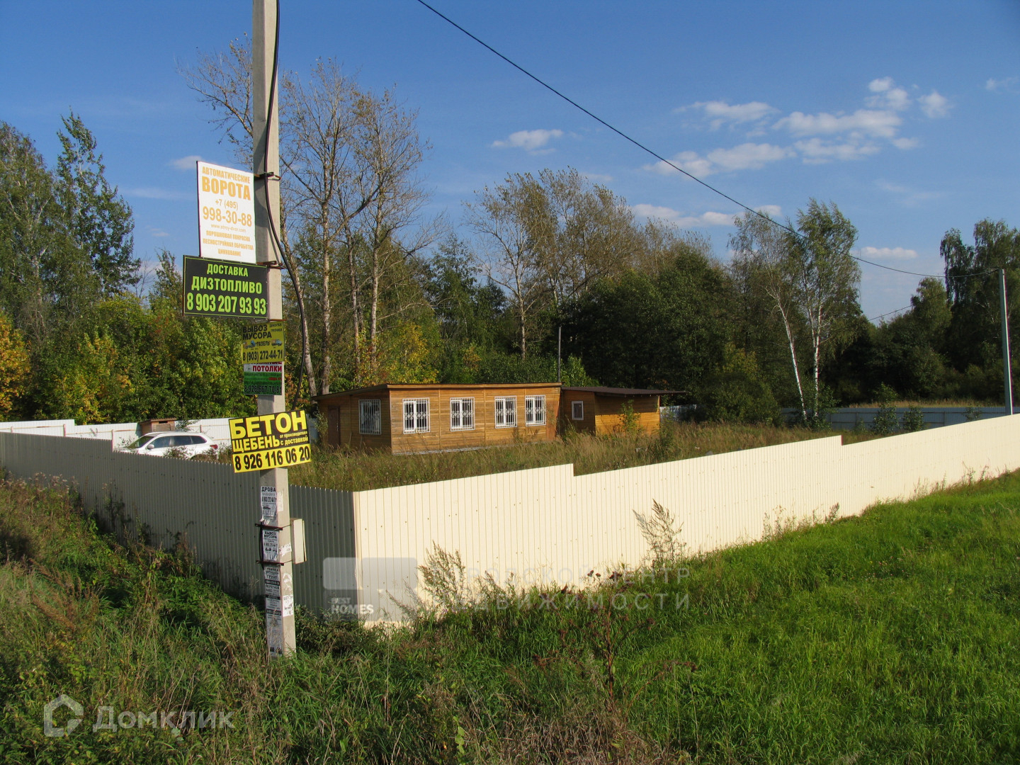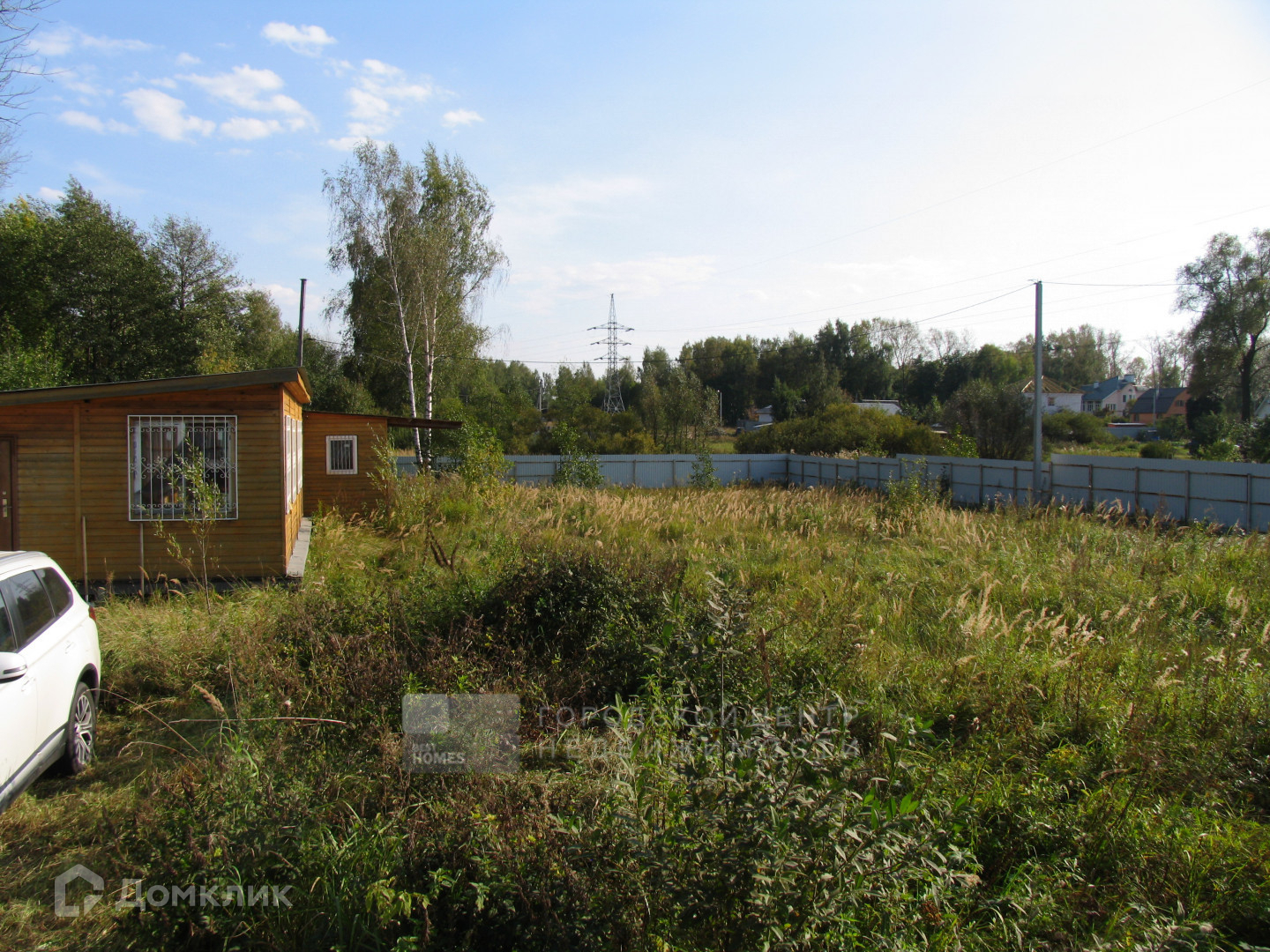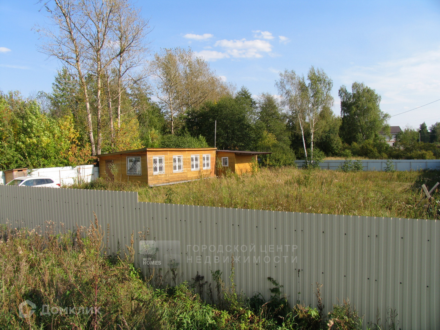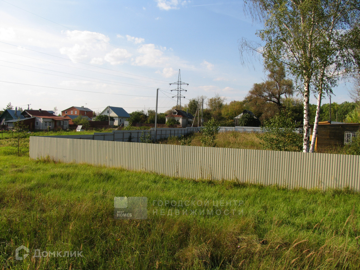 Сухой участок правильной прямоугольной формы, ближе к квадрату, огорожен забором из профлиста. Особенностью и большим достоинством является то, что участок с трех сторон не граничит с соседями.
