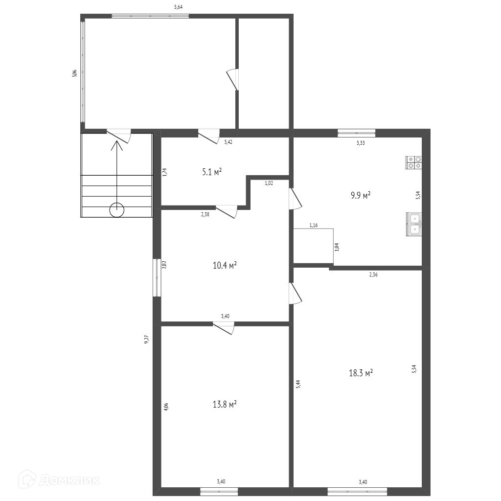 Общая площадь 57.5 м2