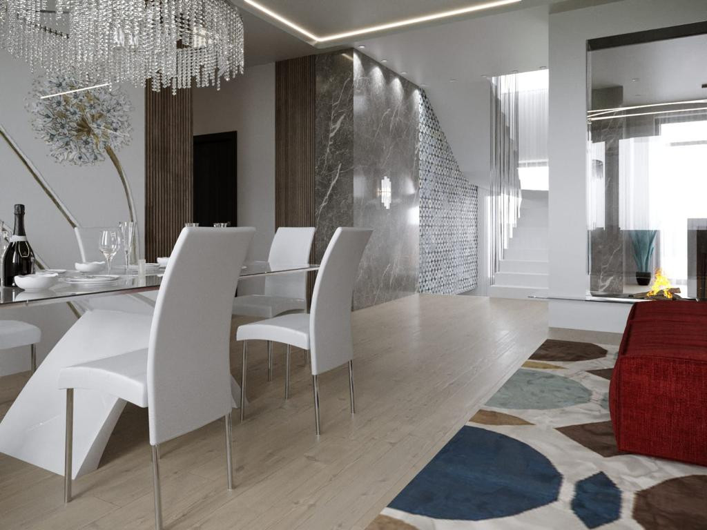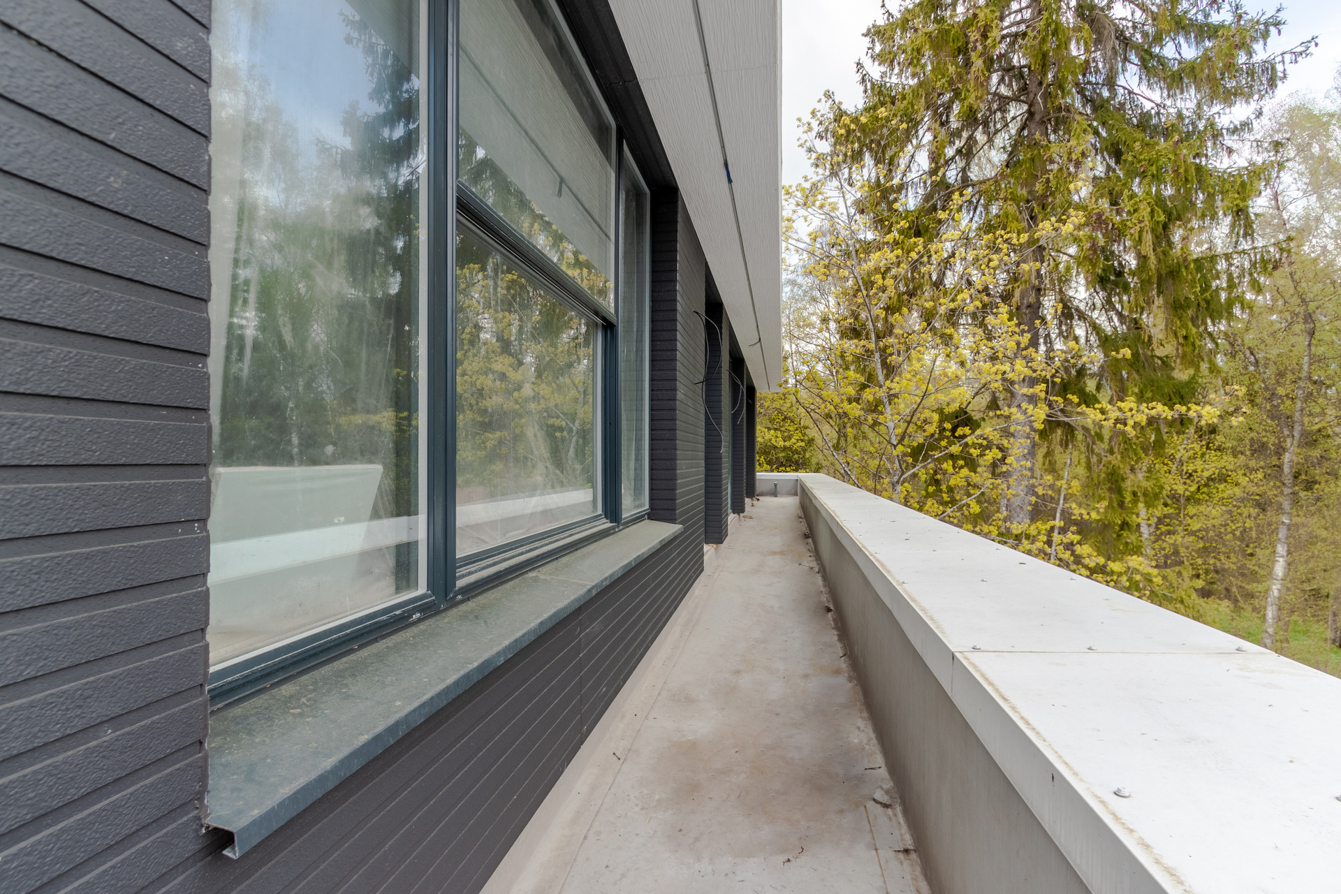 Концепцией дома и ландшафта, которая была разработана и реализована по индивидуальному проекту, предусмотрено единение с природой за счет функционального дизайна и использования натуральных материалов в отделке экстерьера. Дом органично вписан в естественный пейзаж и является его логичным продолжением. Архитектурный облик дополняют панорамные окна и балконы.