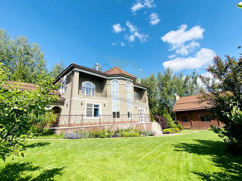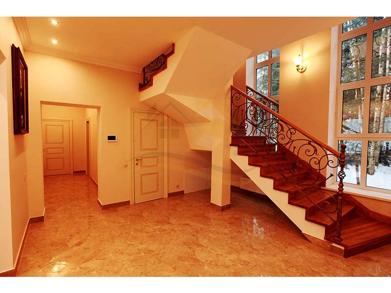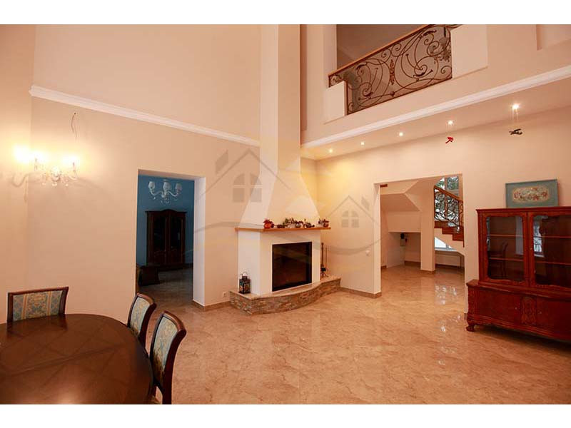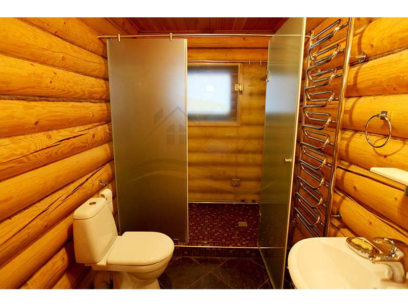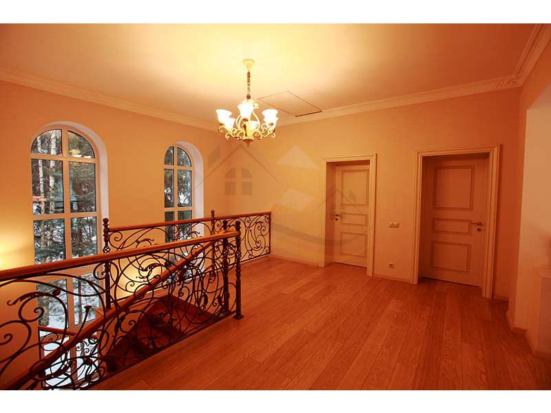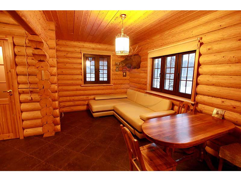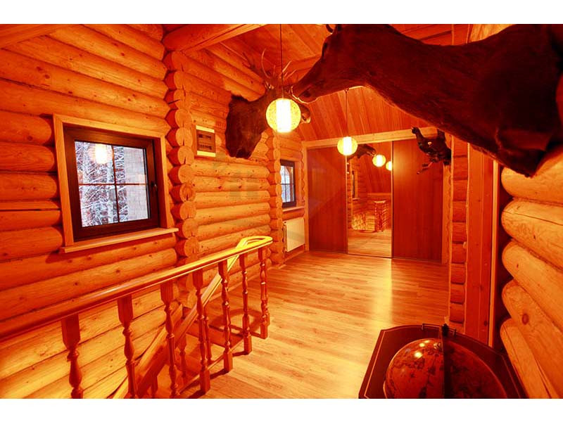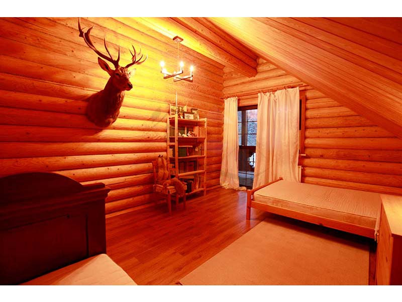 Материал стен оцилиндрованное бревно диаметр 24 см, высота потолка 3 – 4 м, кровля натуральная черепица. Перекрытия бетон и дерево. Полы плитка с водяным теплым полом и ламинат.