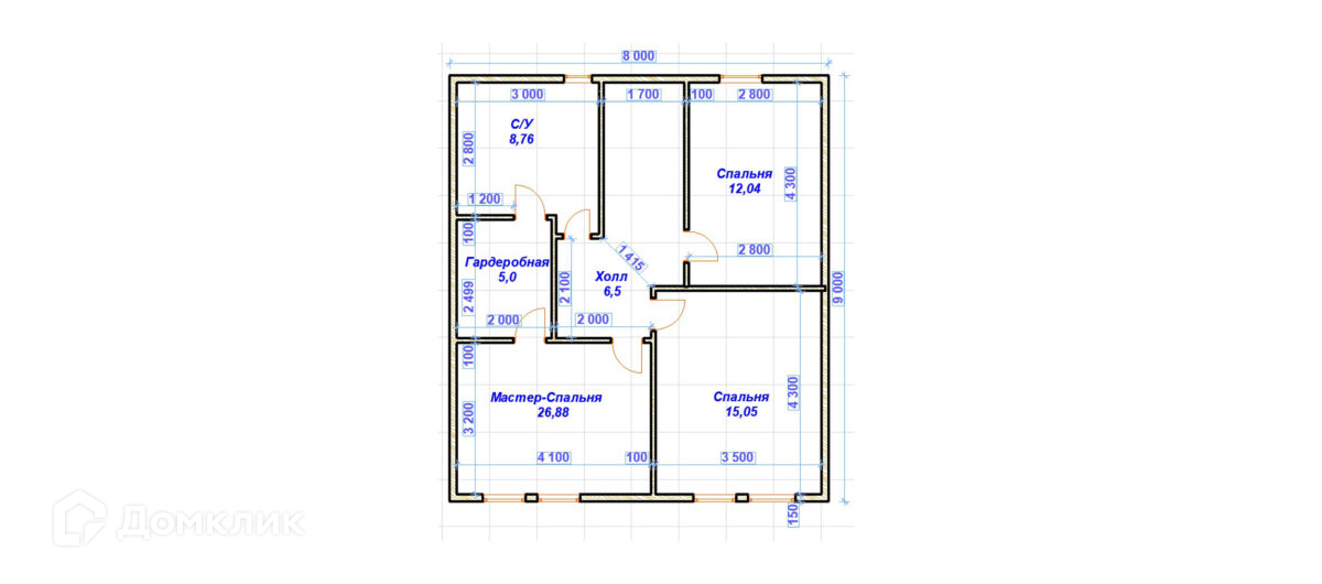 Размер дома 8х9 м, площадь дома 131 м2, кол-во комнат — 4 спальня, кухня-гостиная, сантехнический узел — 2, гардеробная- 1, техническое помещение- 1.