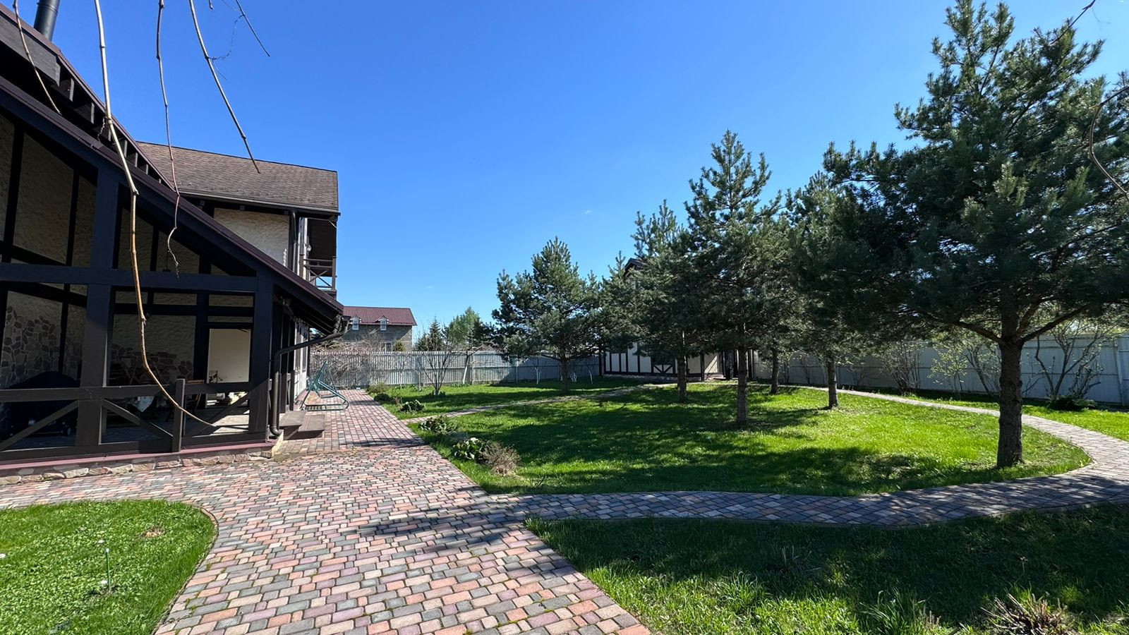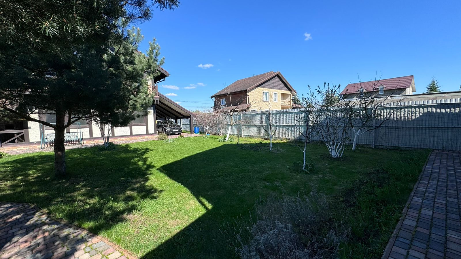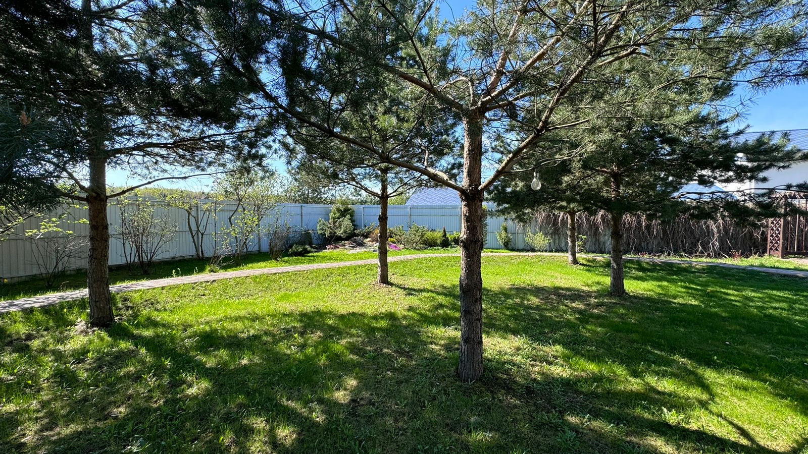 Участок 13.33 сот. ЛПХ, правильной формы, ухоженный, выполнен ландшафтный дизайн. На участке растет много плодоносящих деревьев и кустарников (вишня, черешня, яблоки, груши, смородина, малина), 8 больших сосен, декоративные кустарники. Имеется навес на две машины, беседка. Все дорожки выложены плиткой.