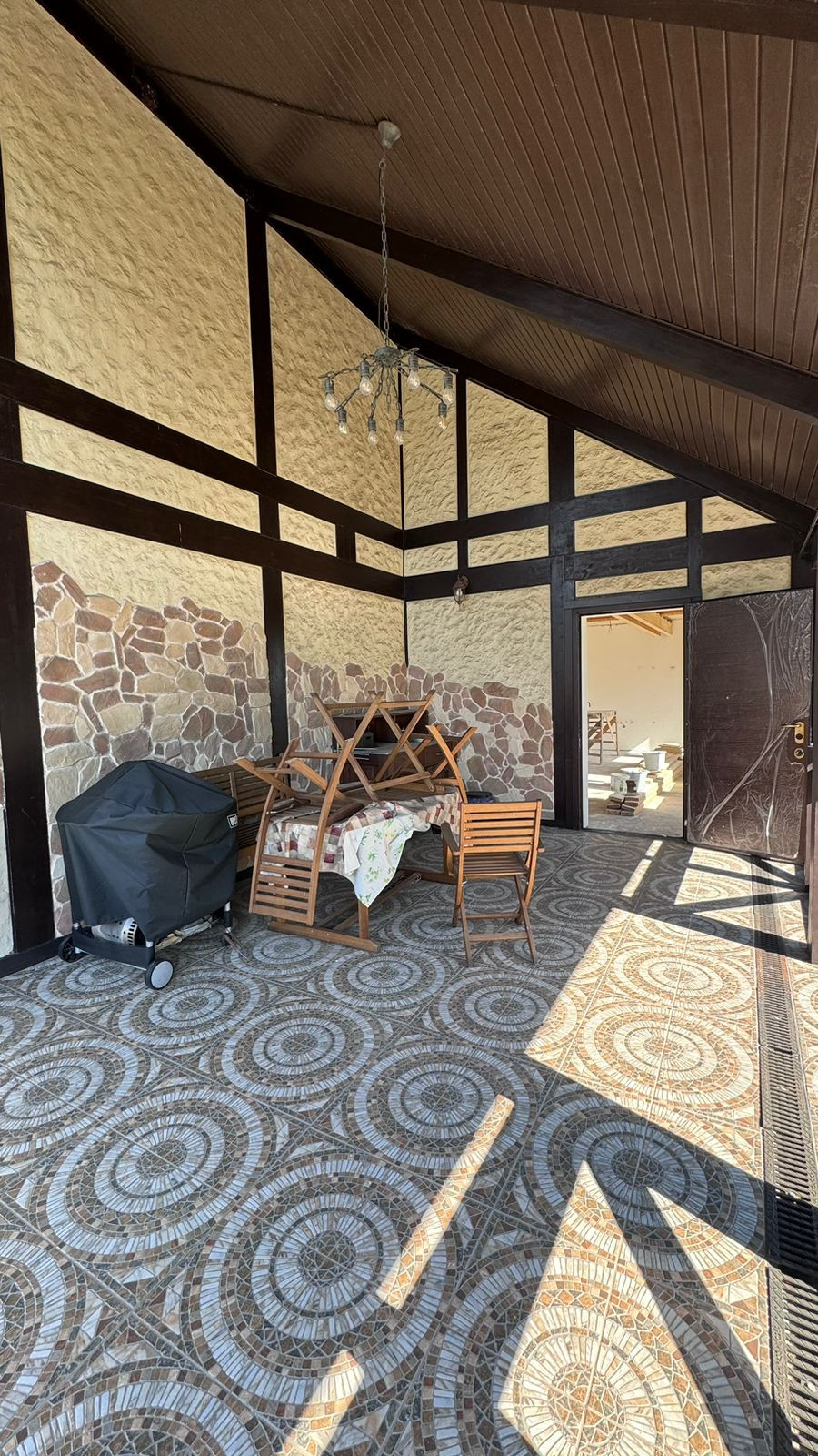 Первый этаж: большая кухня столовая с выходом на веранду, гостиная с камином и вторым светом, гостевая спальня, гардеробная, санузел, котельная. Готов к чистовой отделке.