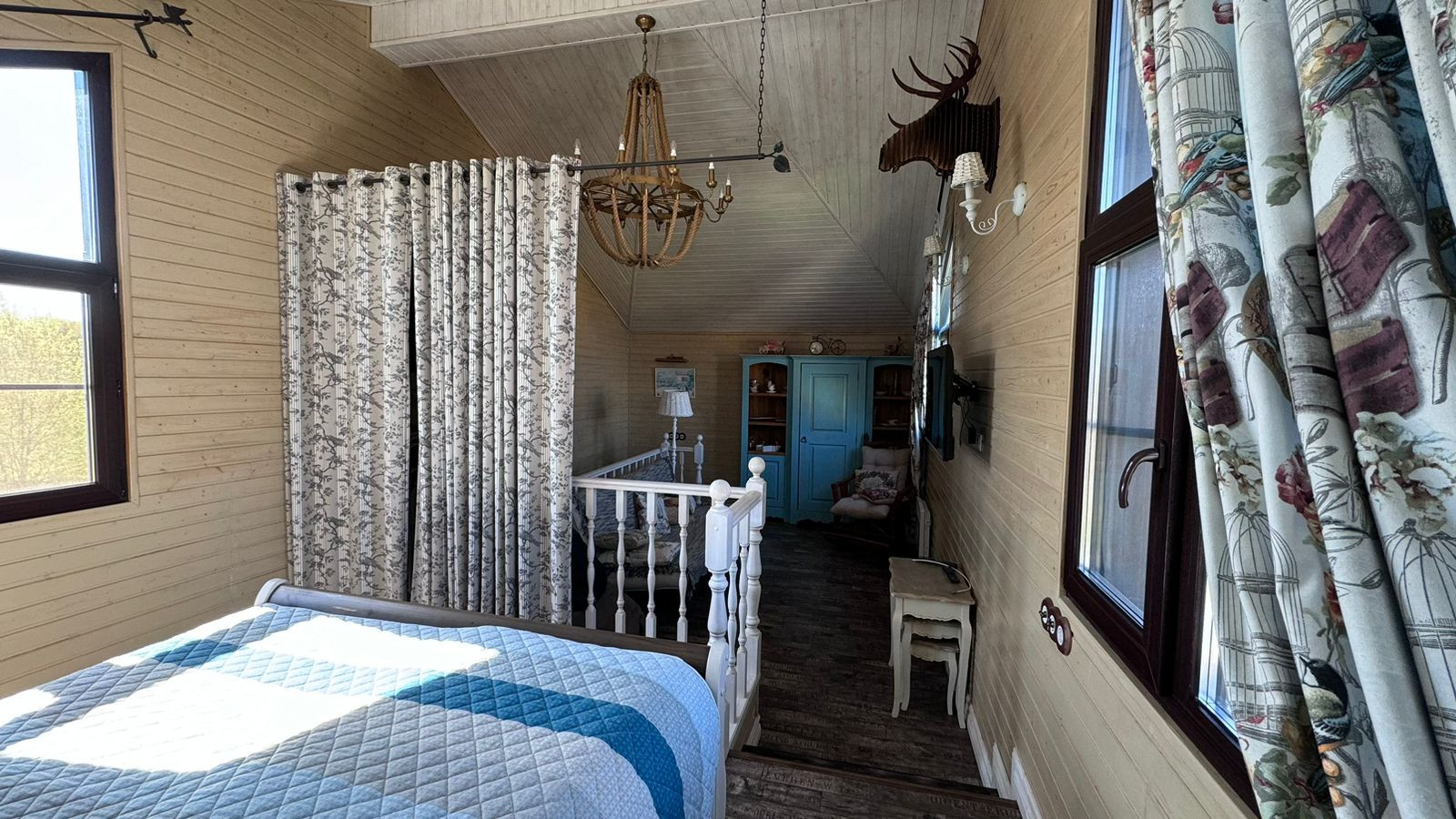 2 этаж: холл, 4 спальни, 2 санузла (один с окном), гардеробная, кладовая, балкон. Чистовая отделка, мебель, сантехника (душевые кабины, унитазы, раковины, мебель).