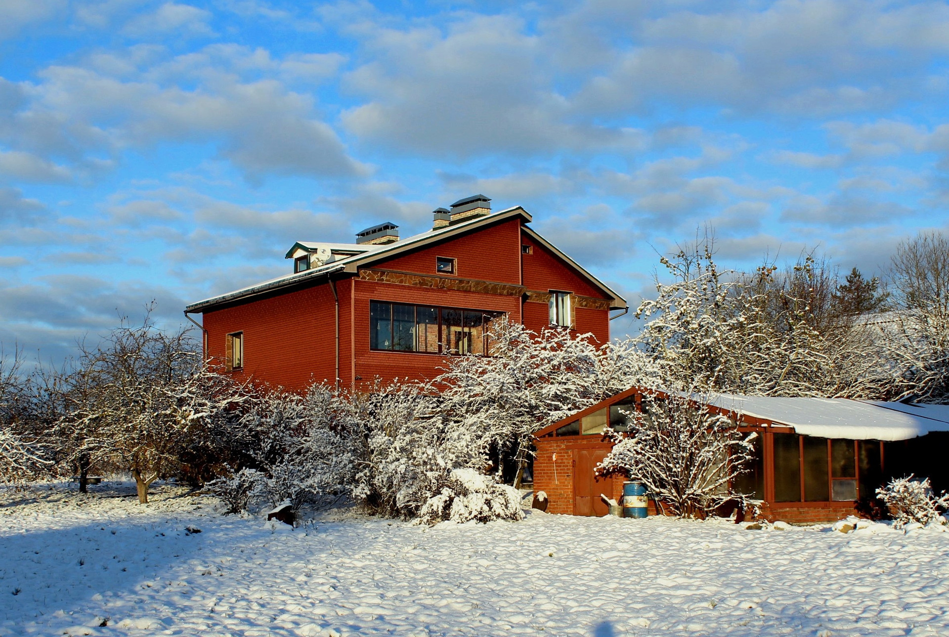 Кроме основного здания на участке расположена большая капитальная теплица на бетонном фундаменте, с кирпичными стенами и несущими металлическими конструкциями, в которой хватит места как для виноградника и плодовых южных деревьев,  так и для «местных обитателей» огурцов и помидоров!