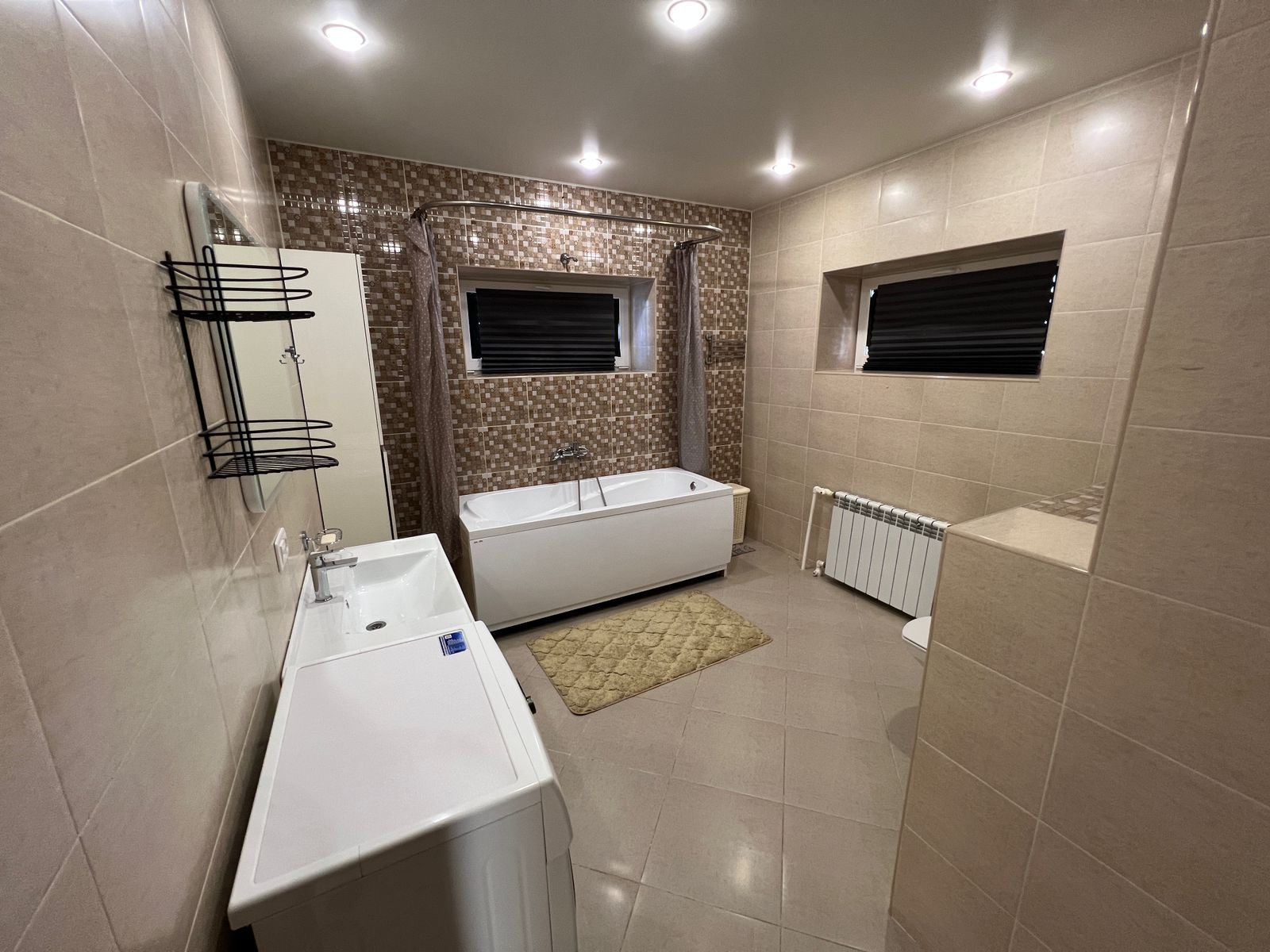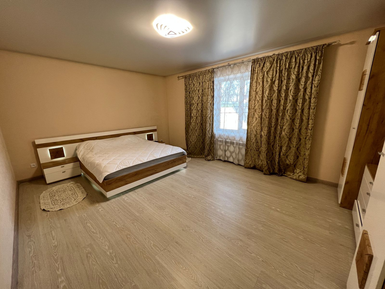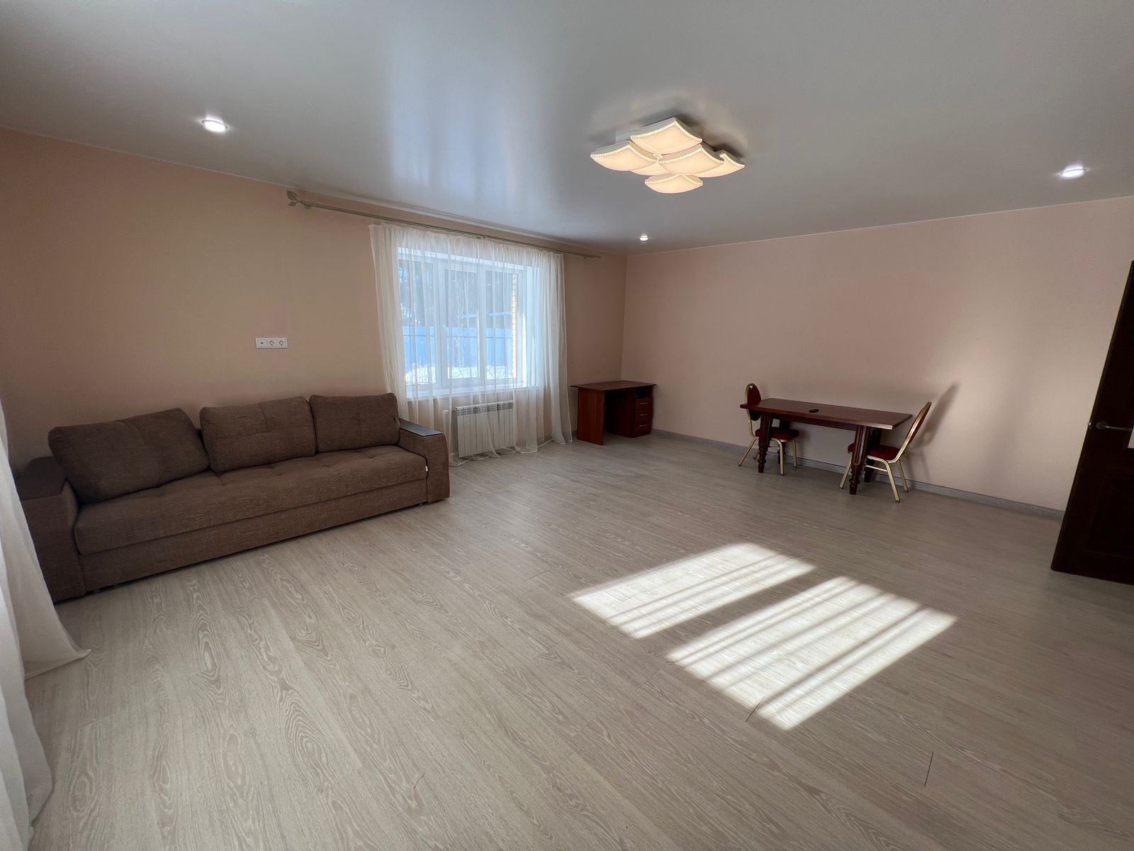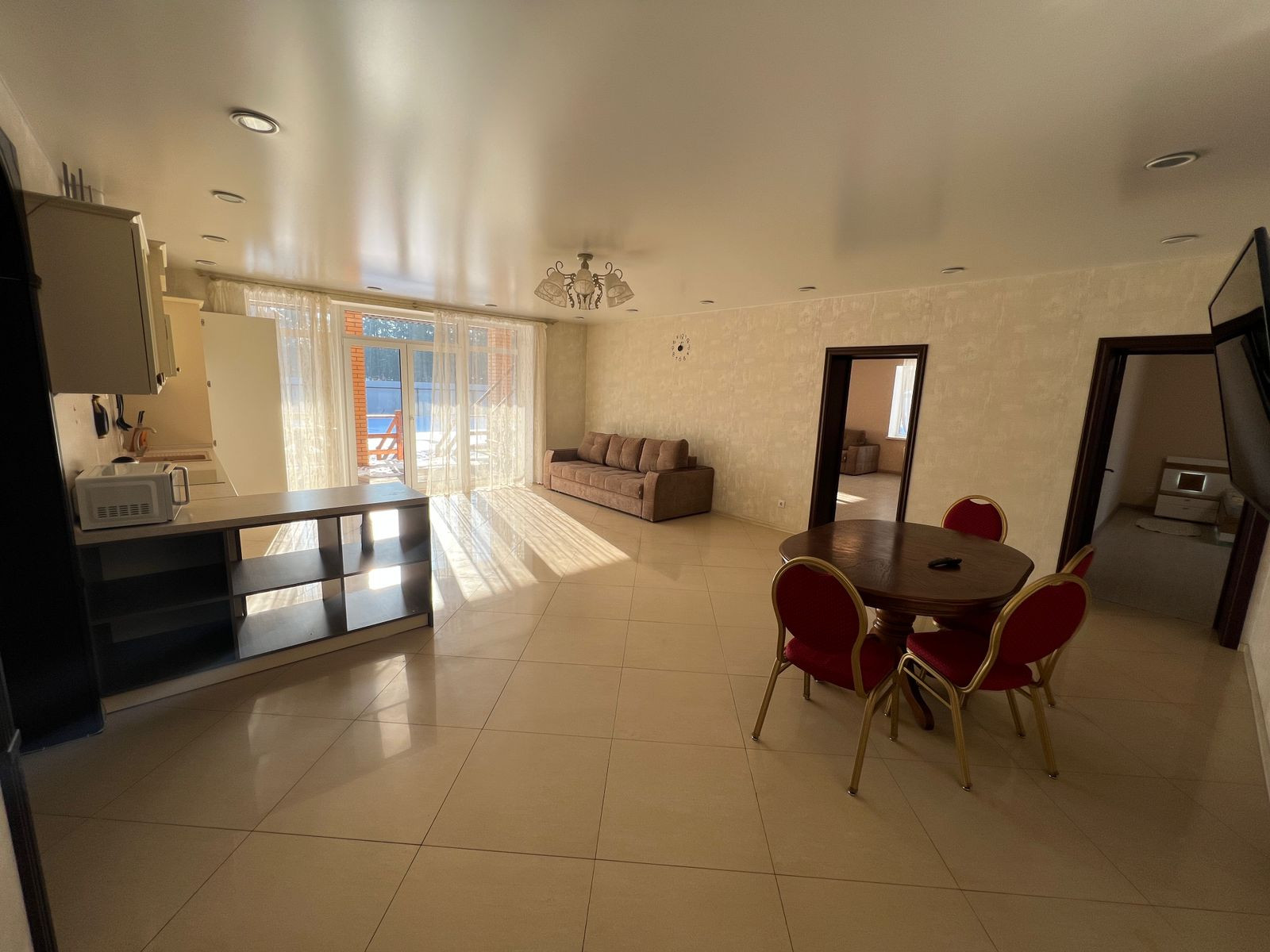 Дом 171 кв.м, одноэтажный. Есть второй этаж, можно использовать для хранения сезонных вещей, зимней резины и прочее. В доме отопление электричеством, в данный момент проводится газ. Большая холл-прихожая, можно оставить вещи, рядом гостевой санузел и котельная. Кухня-гостиная оборудована кухонным гарнитуром, холодильником, плитой, микроволновкой. Есть все необходимое для комфортного проживания- мебель, посуда, чайник, телевизор и пр. Проведен высокоскоростной интернет. Две спальни и большая комната, можно оборудовать детскую комнату, рабочий кабинет- зависит от вашего желания. Санузел с ванной, есть стиральная машинка. На кухне и в ванной комнате полы с подогревом.