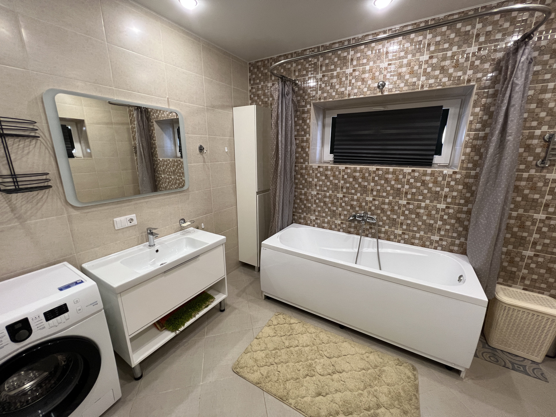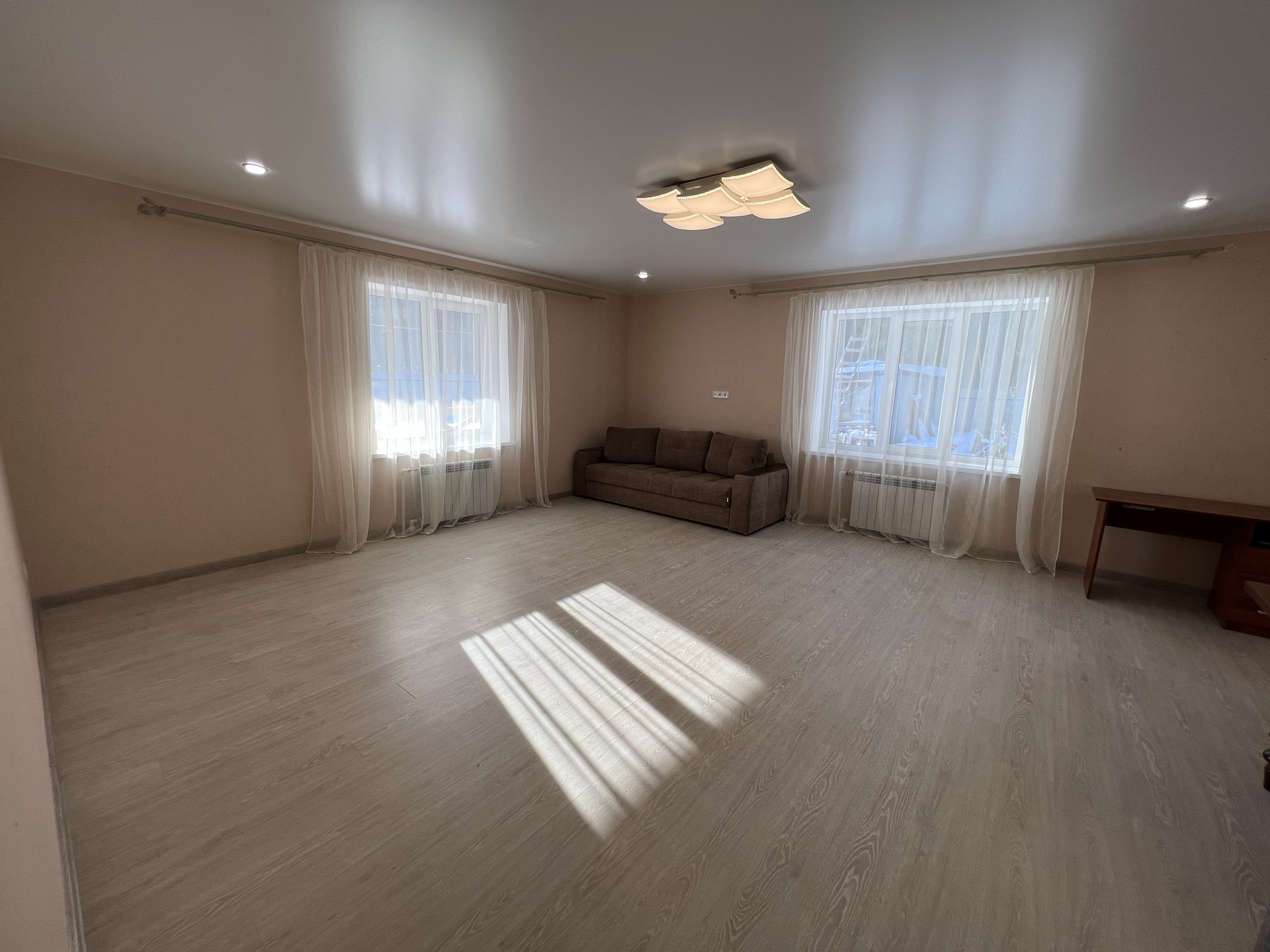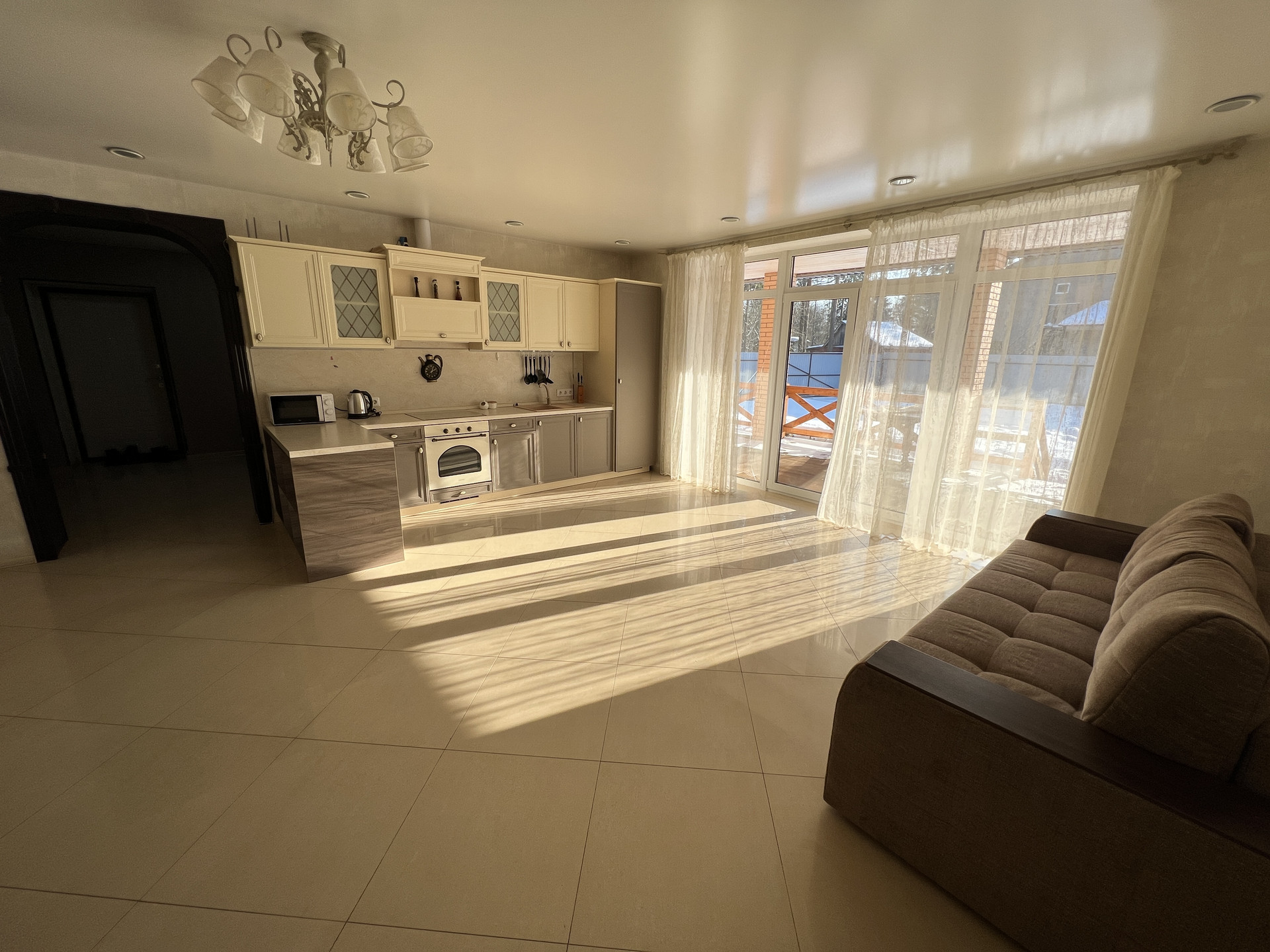 Дом 171 кв.м, одноэтажный. Есть второй этаж, можно использовать для хранения сезонных вещей, зимней резины и прочее. В доме отопление электричеством, в данный момент проводится газ. Большая холл-прихожая, можно оставить вещи, рядом гостевой санузел и котельная. Кухня-гостиная оборудована кухонным гарнитуром, холодильником, плитой, микроволновкой. Есть все необходимое для комфортного проживания- мебель, посуда, чайник, телевизор и пр. Проведен высокоскоростной интернет. Две спальни и большая комната, можно оборудовать детскую комнату, рабочий кабинет- зависит от вашего желания. Санузел с ванной, есть стиральная машинка. На кухне и в ванной комнате полы с подогревом.