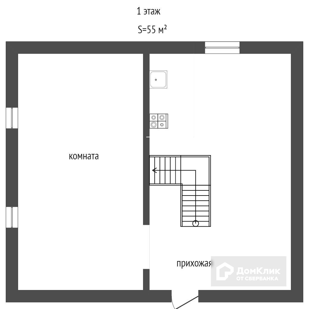 Общая площадь 55 м2