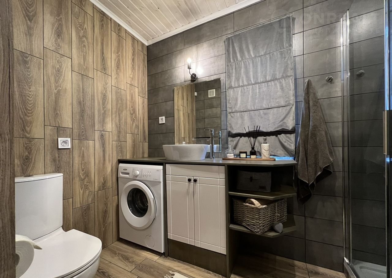 Дом двухэтажный, тёплый, круглогодичного проживания. Полностью мебелирован, с хорошей бытовой техникой. Сразу готов к заселению и не требует дополнительных вложений. Вся разводка инженерных коммуникаций в доме (электричество, вода) скрытая. Санузел с отделкой керамогранитом. Душевая ниша встроенная, с эстетичной стеклянной перегородкой, краны и душевая лейка Grоhе. Все вспомогательные коммуникации (бойлер для воды, фильтры очистительные и т.д.) скрыты.