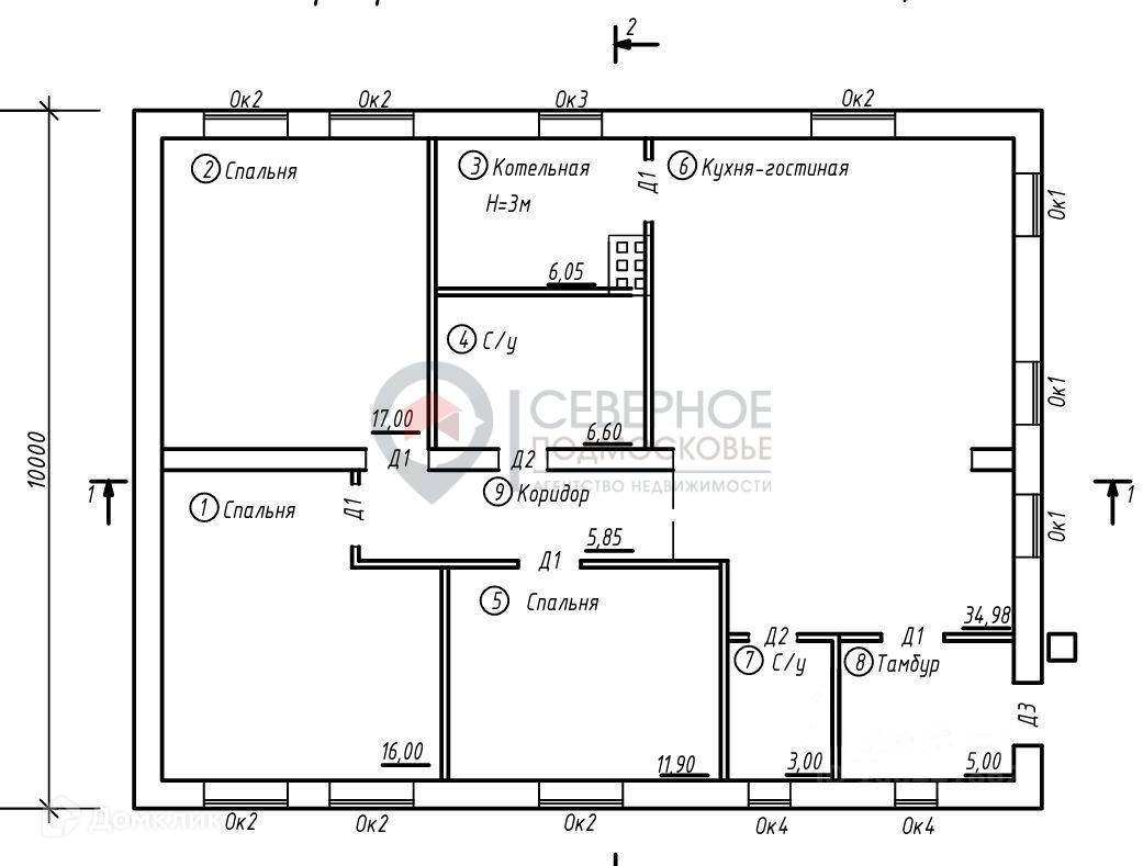 Просторная кухня- гостиная/35 м2, Два с/у/6,60/3 м2, котельная 6,05 м2, коридор 5,85 м2, комнаты 17/16/11,9 м2, тамбур 5 м2, веранда 20 м2, холодный чердак 40 м2.
