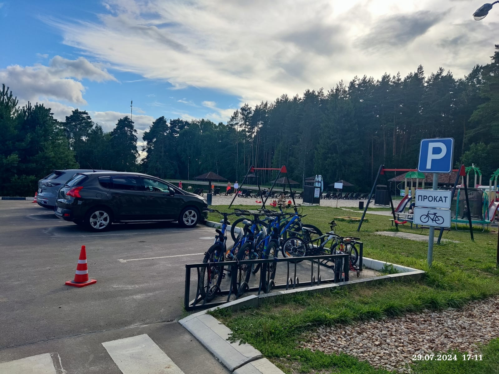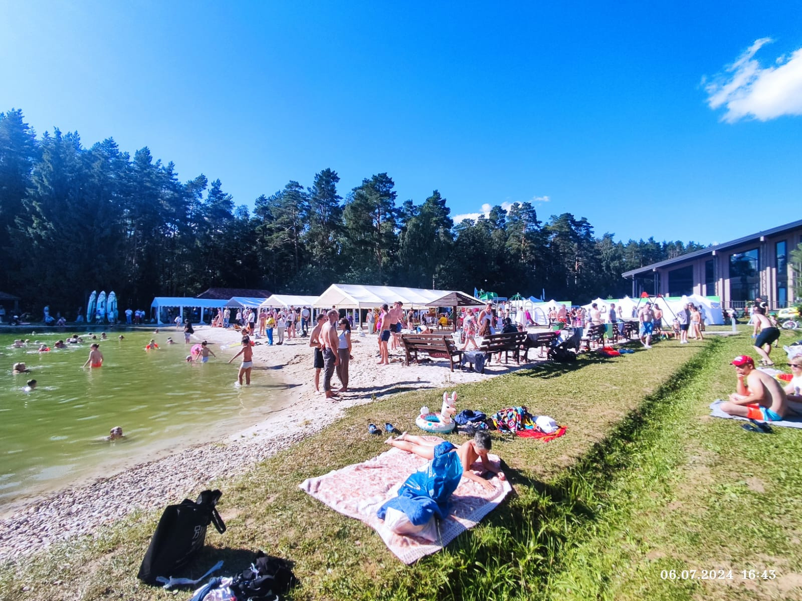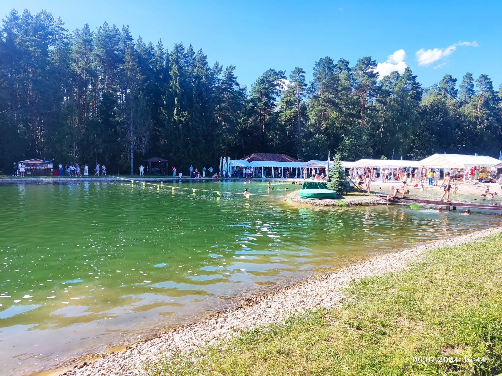 Есть свое лесное озеро для отдыха и рыбалки.  Благоустроенный пляж с белым песком.