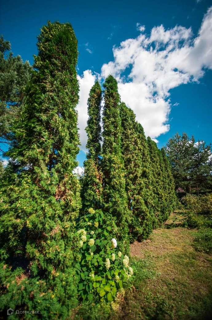 Участок ухожен и благоустроен, высажены розы и гортензии, высокие сосны, можжевельник, шикарные туи, плодовые кустарники, яблони. Под соснами на участке растут лесные грибы (маслята и подосиновики), так много, что собирают каждый день.