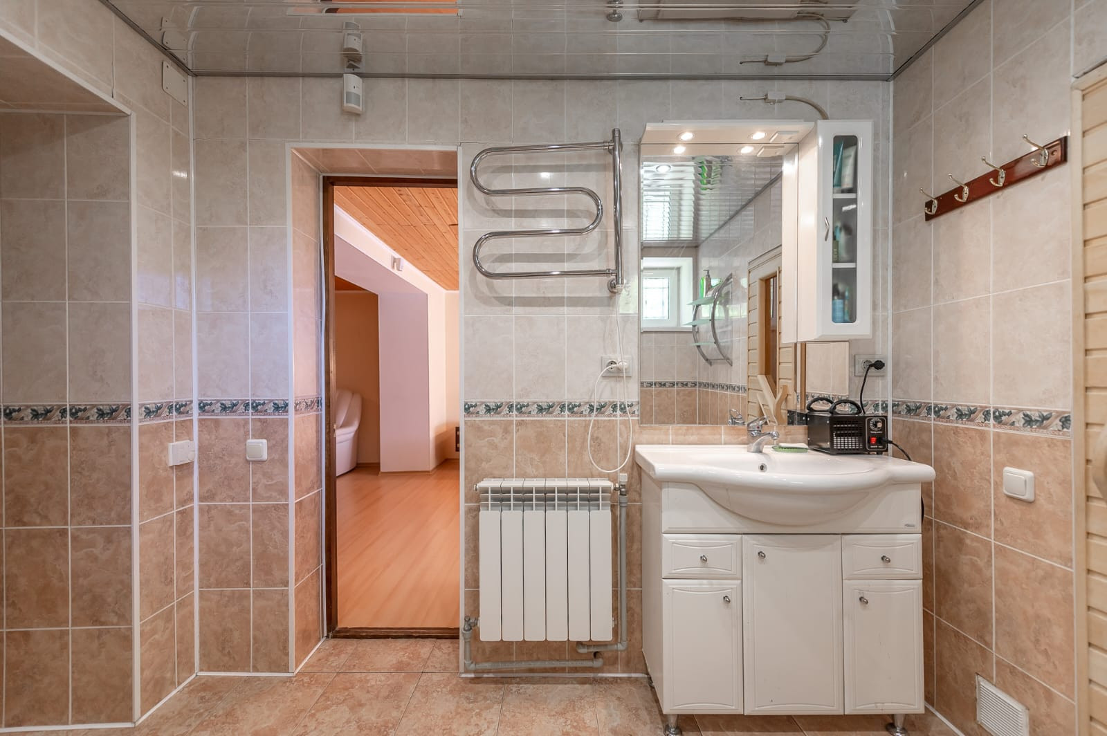 Два санузла, один из них – с джакузи и душевой кабиной, второй с душевой кабиной и выходом в сауну.