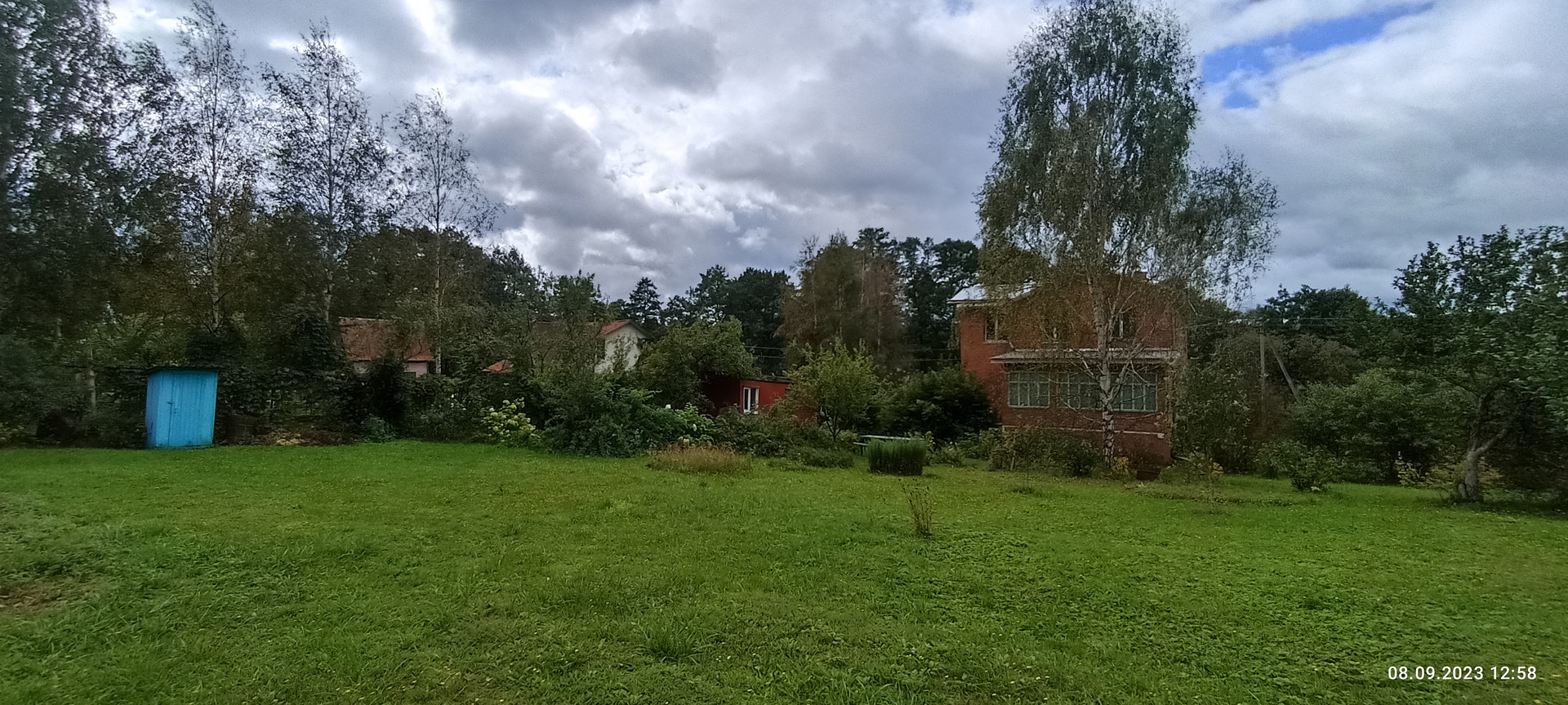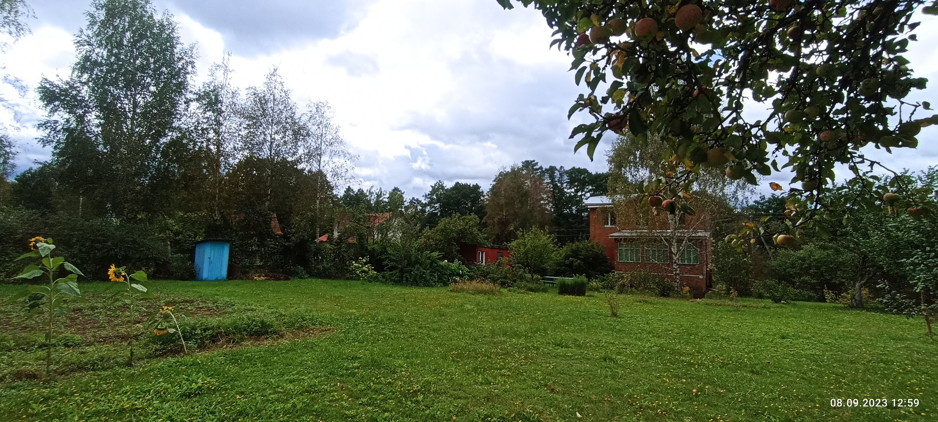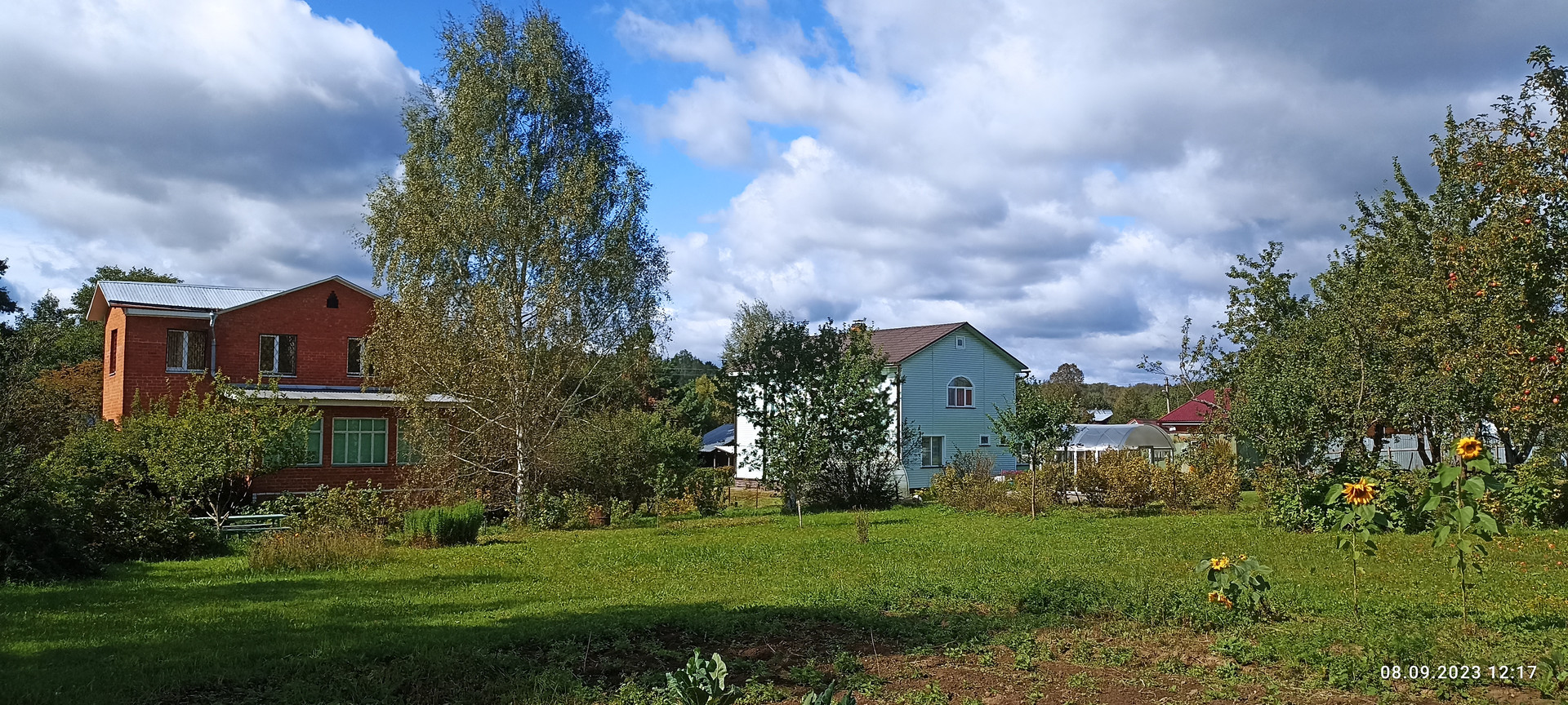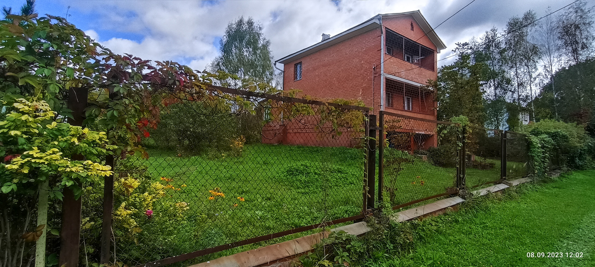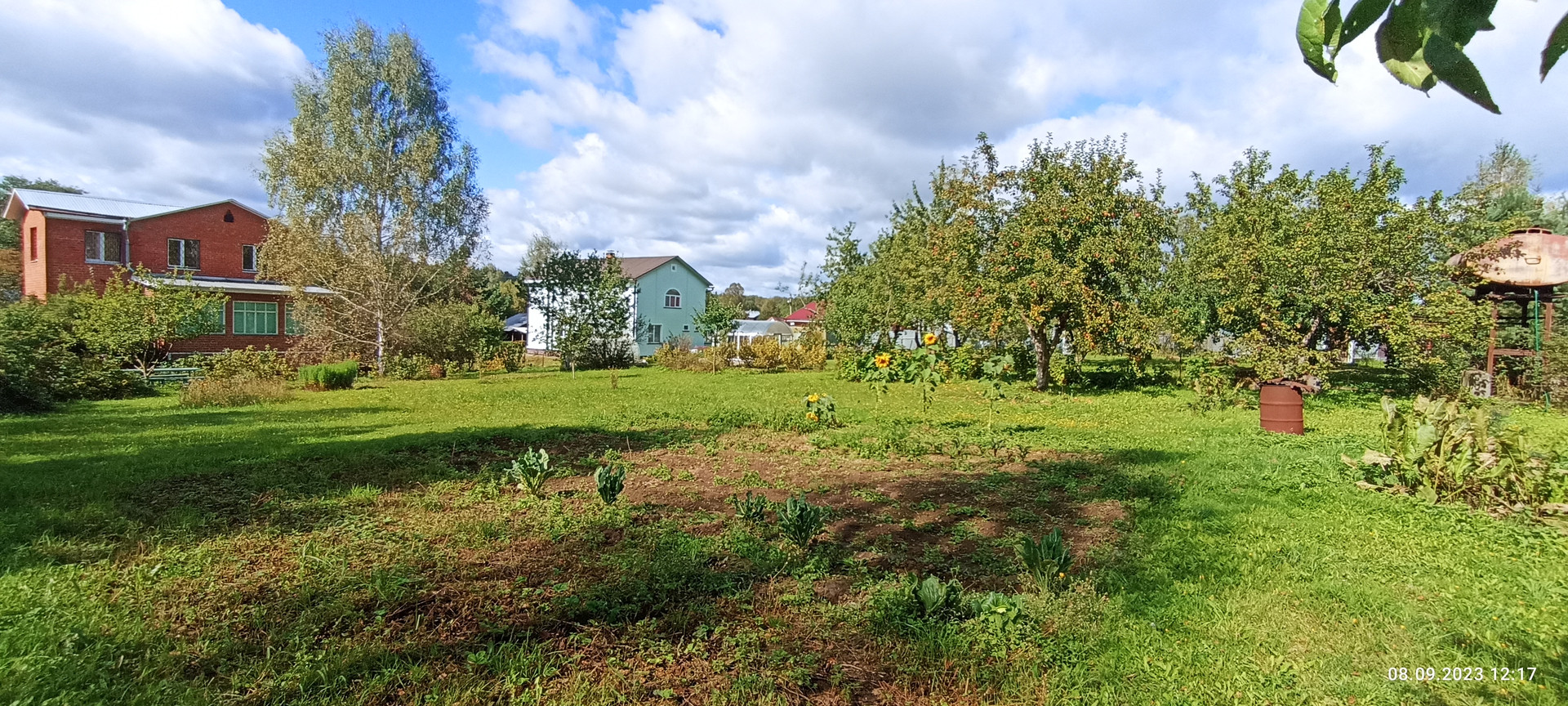 Со стороны сада на участке расположен хоз блок 3.5 на 10 м отделанный вагонкой, уличный СУ, скважина, накопительная емкость для полива. Сам сад с газоном из низкорастущей земляники, великолепным фруктовым садом (яблони 7 шт, смородина, ежевика, жимолость, слива, шиповник, рябина,каштан) Под раскидистой березой расположена место для пикника, вход в дом украшает жасмин и сирень.