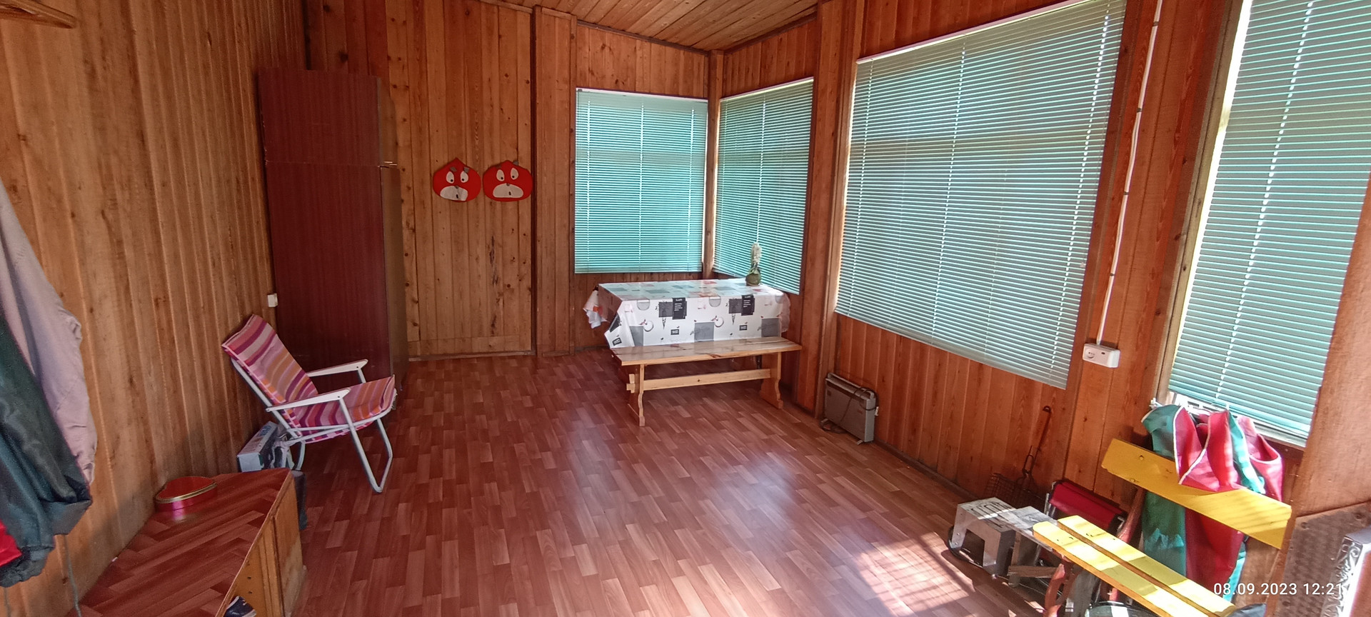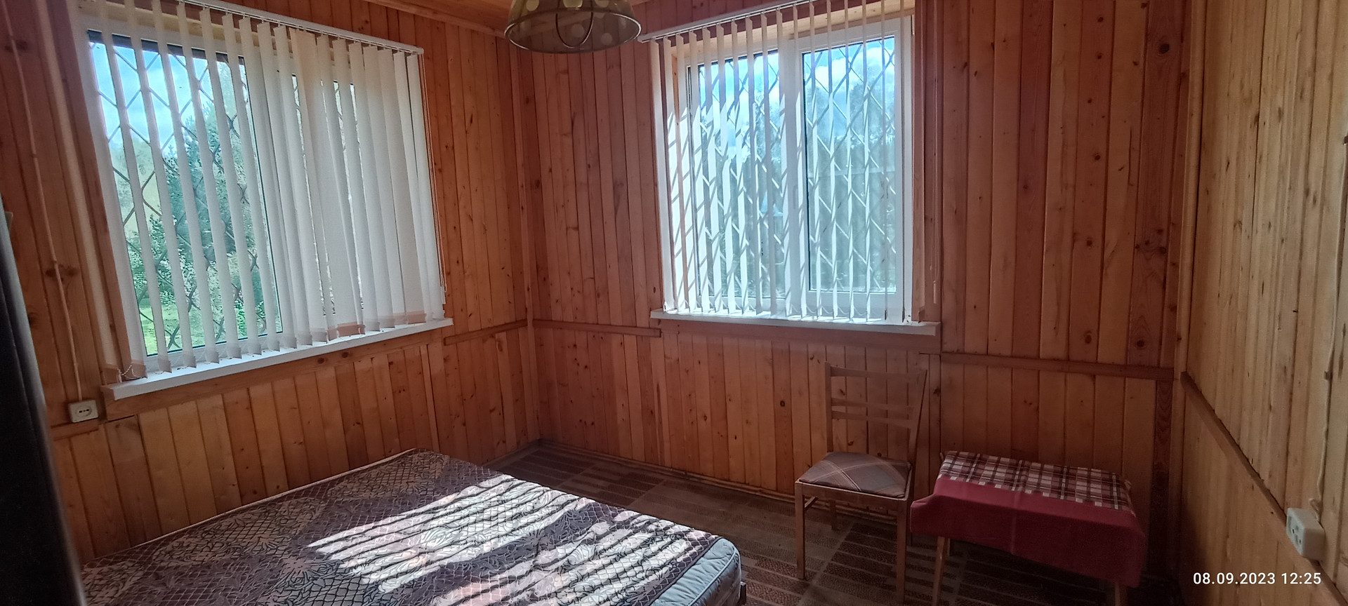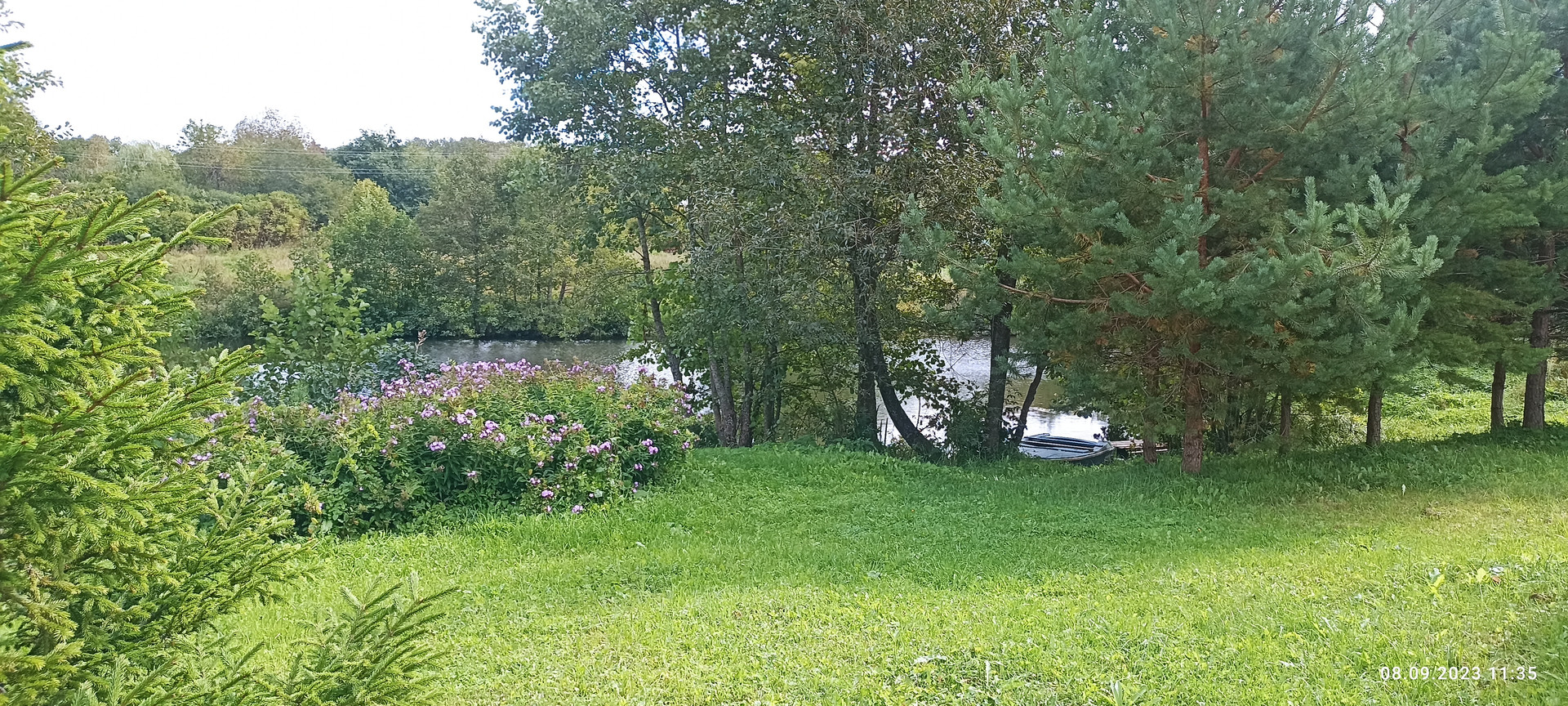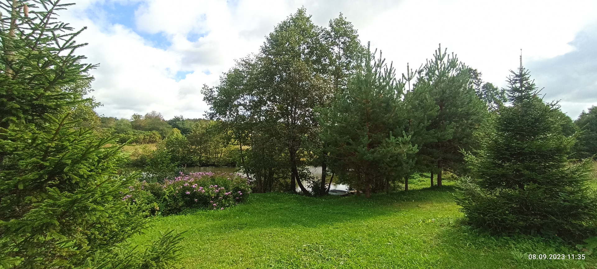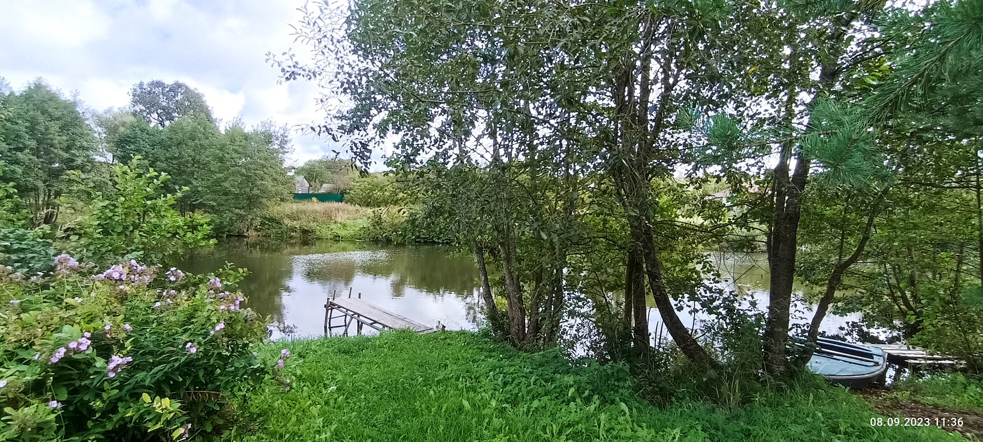 Со стороны сада на участке расположен хоз блок 3.5 на 10 м отделанный вагонкой, уличный СУ, скважина, накопительная емкость для полива. Сам сад с газоном из низкорастущей земляники, великолепным фруктовым садом (яблони 7 шт, смородина, ежевика, жимолость, слива, шиповник, рябина,каштан) Под раскидистой березой расположена место для пикника, вход в дом украшает жасмин и сирень.