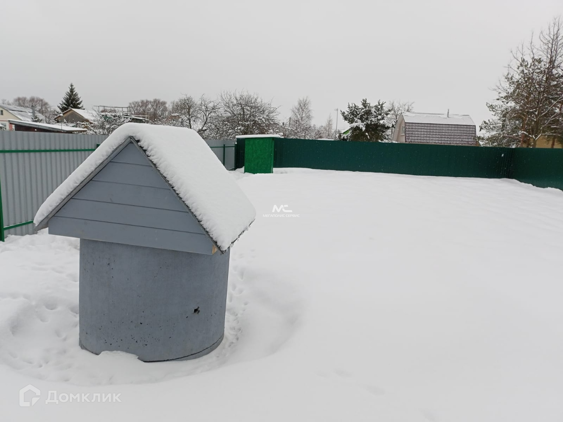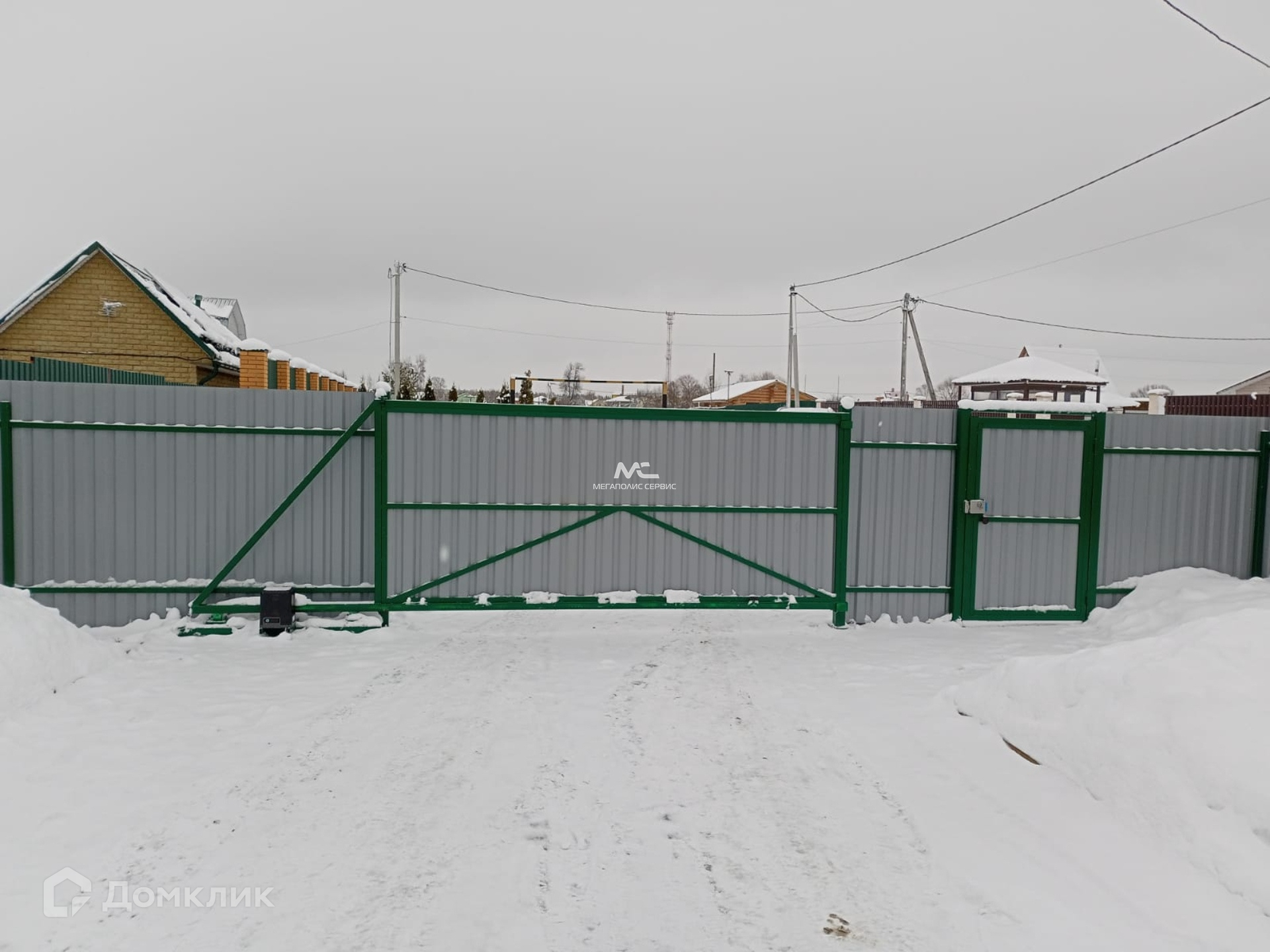 Участок правильной формы, площадь семь соток, огорожен забором из профильного железа, откатные ворота и калитка из идентичного материала.