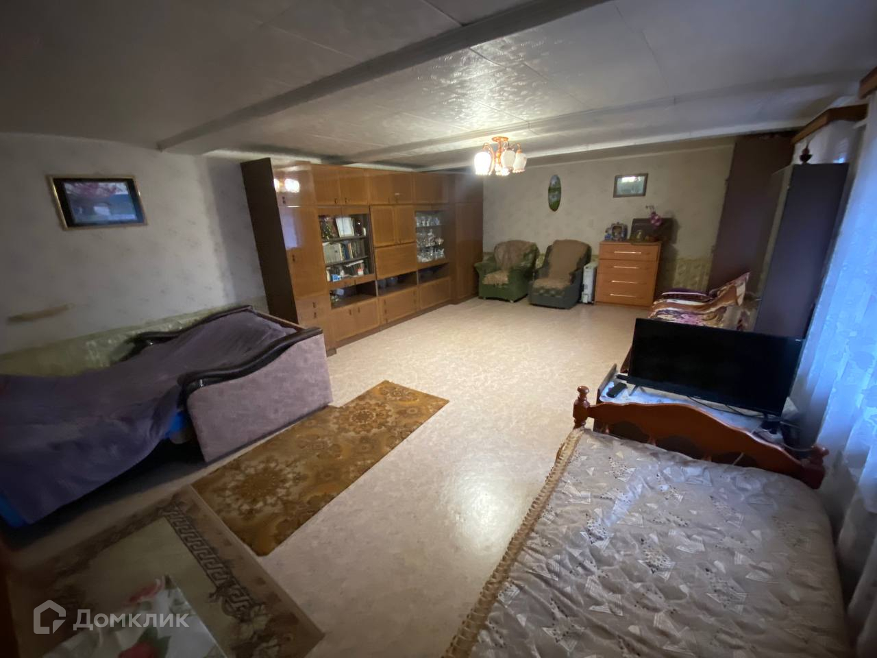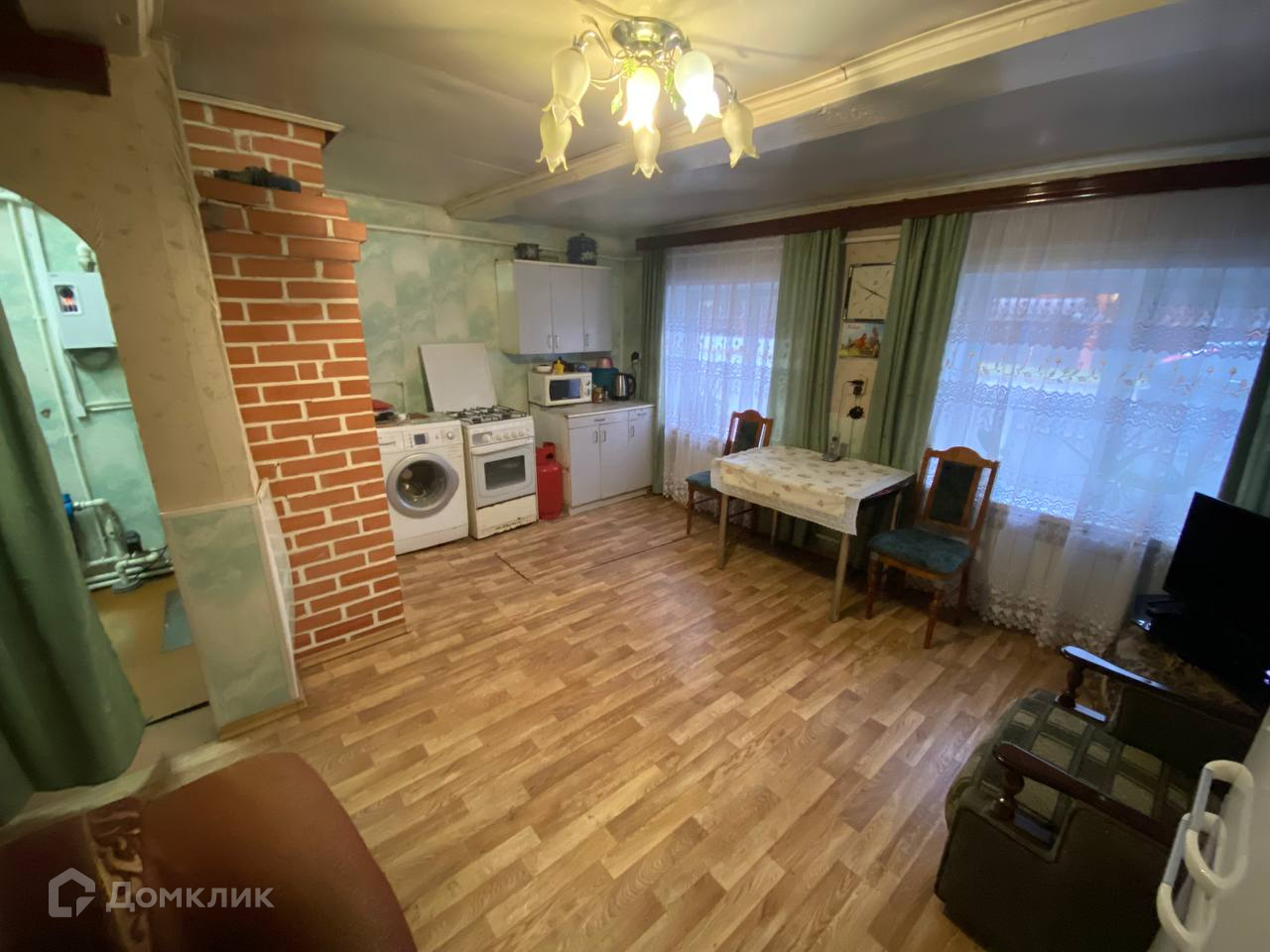 На участке расположен дом из бревна с кирпичным фундаментом, общей площадью 50 кв.м и просторным двором