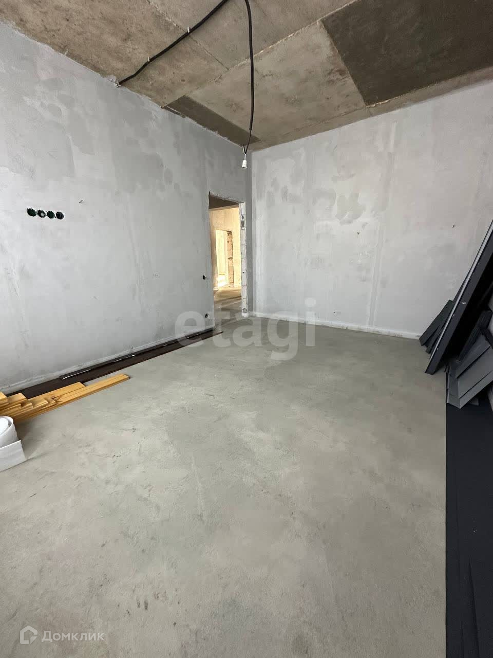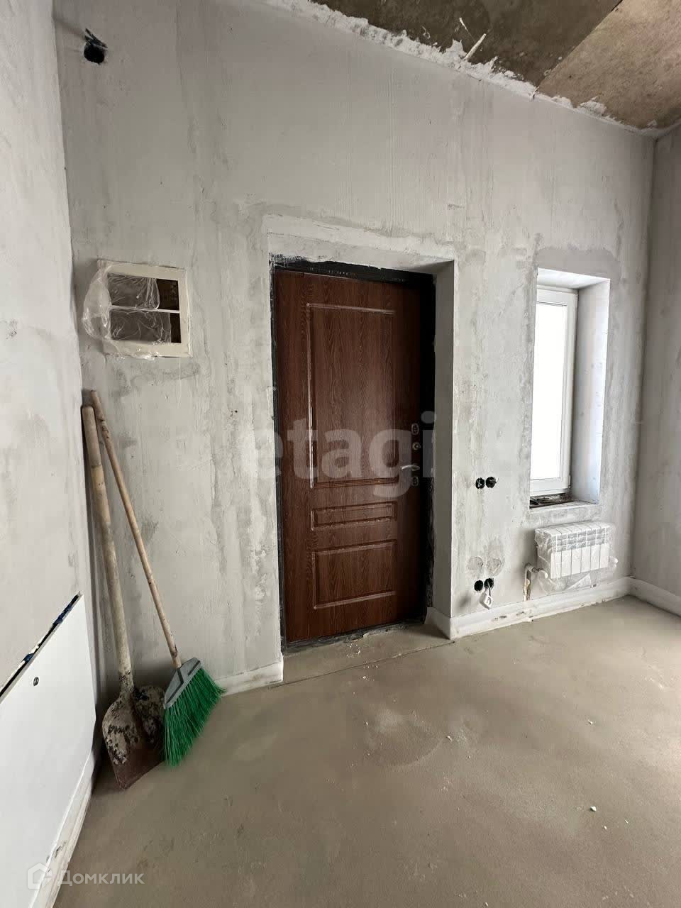 Выполнена гипсовая штукатурка и стяжка пола.