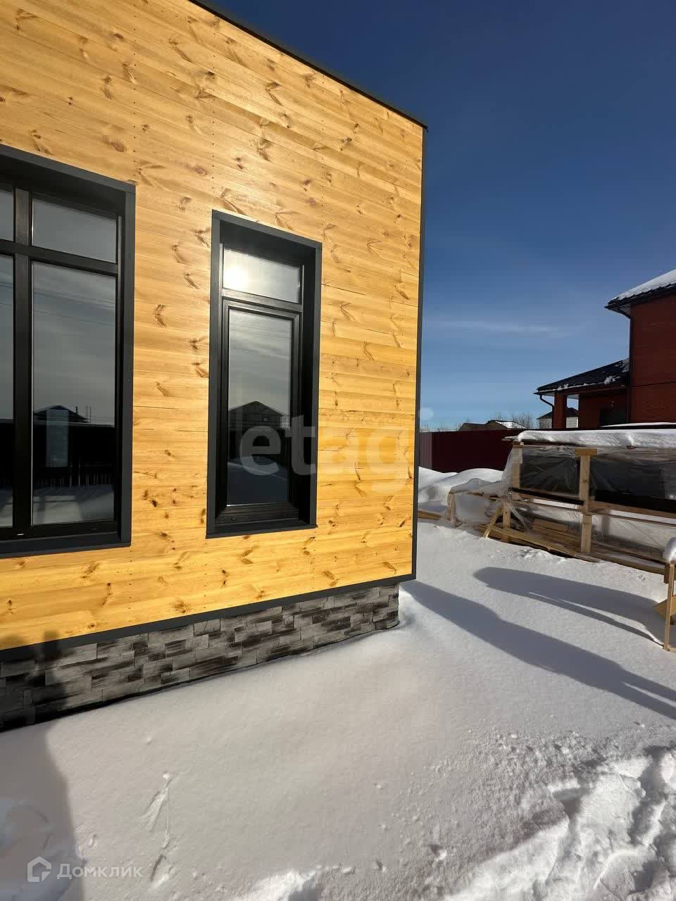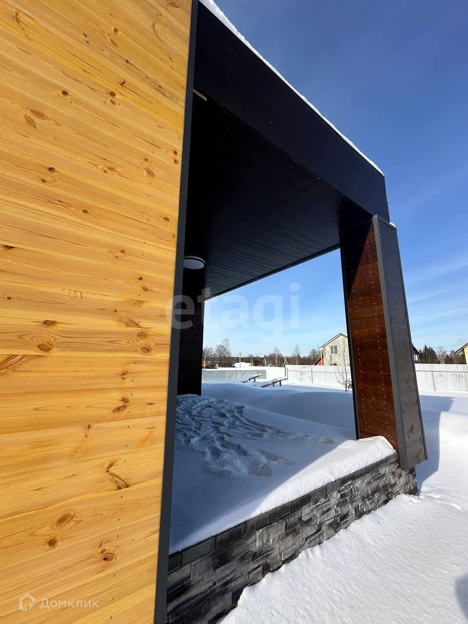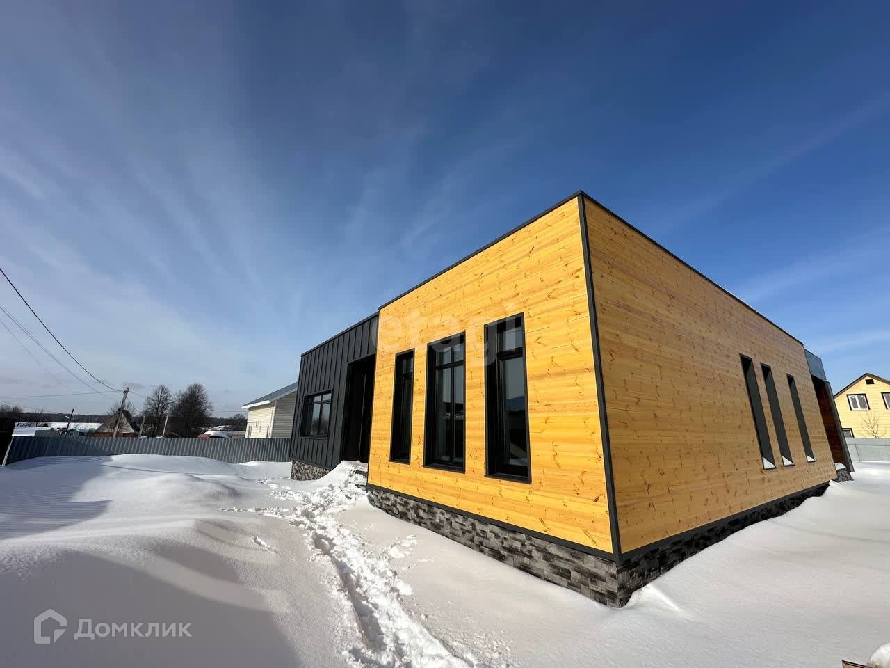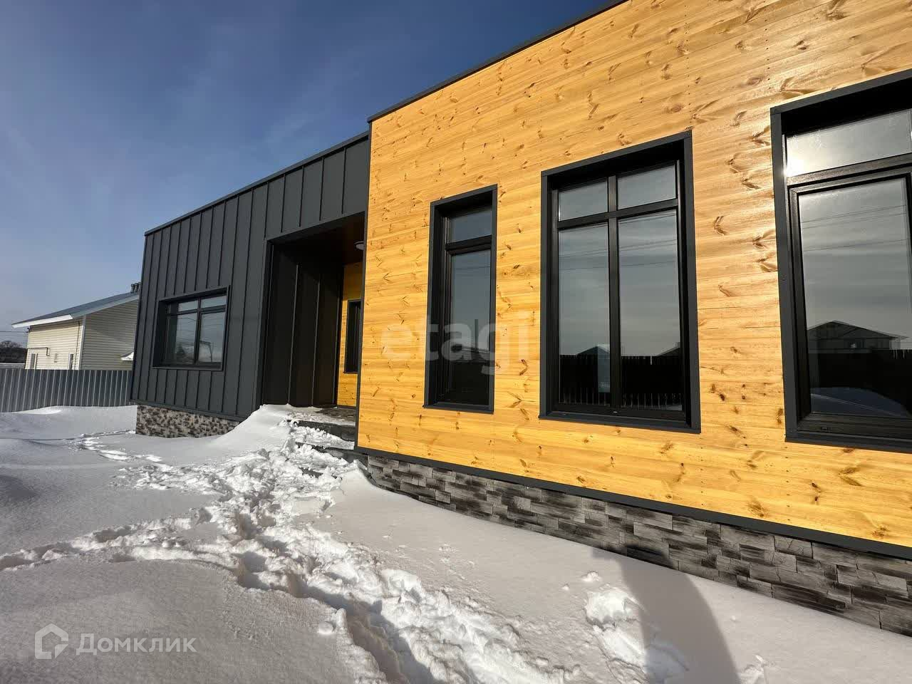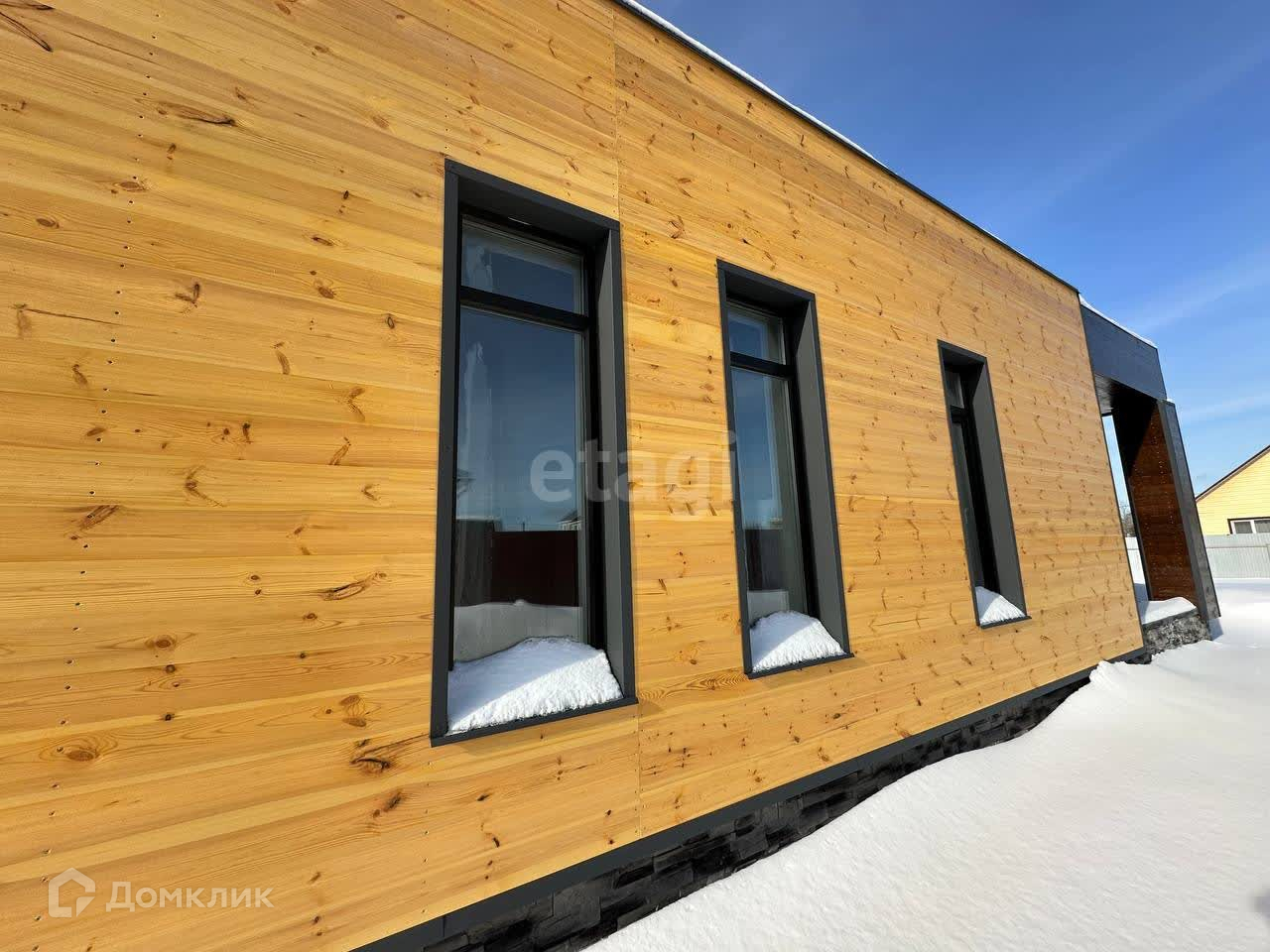Фасады выполнены кликфальцем «Грандлайн Кликфальц Про» и шпунтованной доской, все фасады вентилируемые, отливы и наличники «Грандлайн».