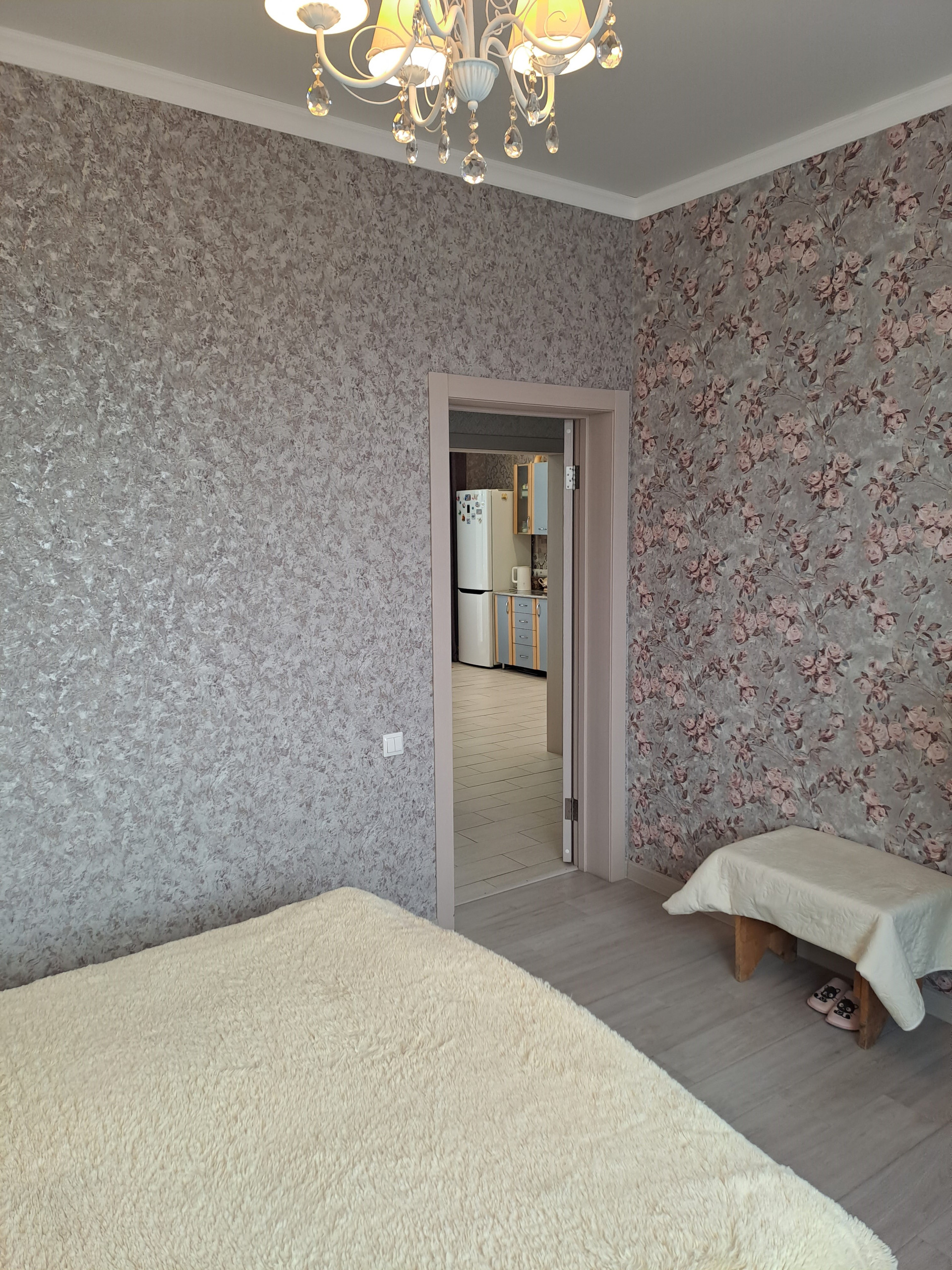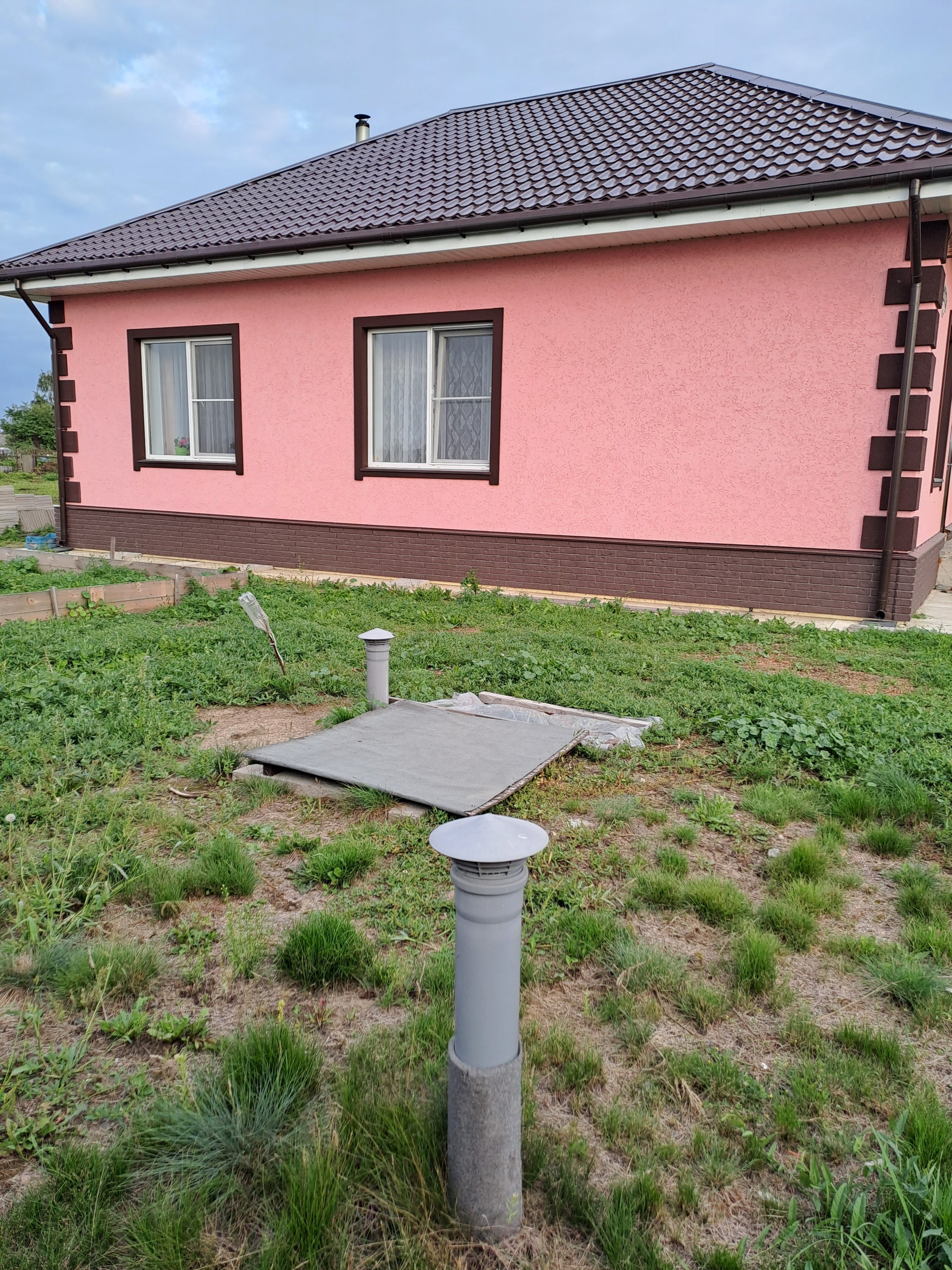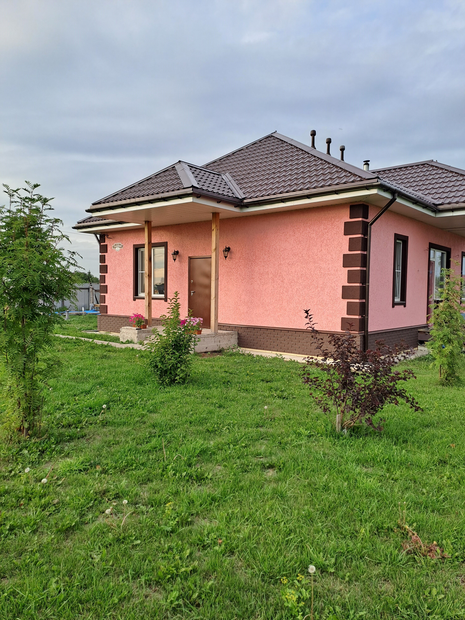 Дом 2020 года, одноэтажный, построен из арболитовых блоков, снаружи оштукатурен теплой штукатуркой (перлит+цемент толщиной 5см), отделан декоративной штукатуркой короед  и покрашен. Плитный фундамент с усилением. Внутри сделан качественный косметический ремонт: потолки натяжные, на стенах обои, полы с подогревом, окна ПВХ. Санузел раздельный, в кафеле.