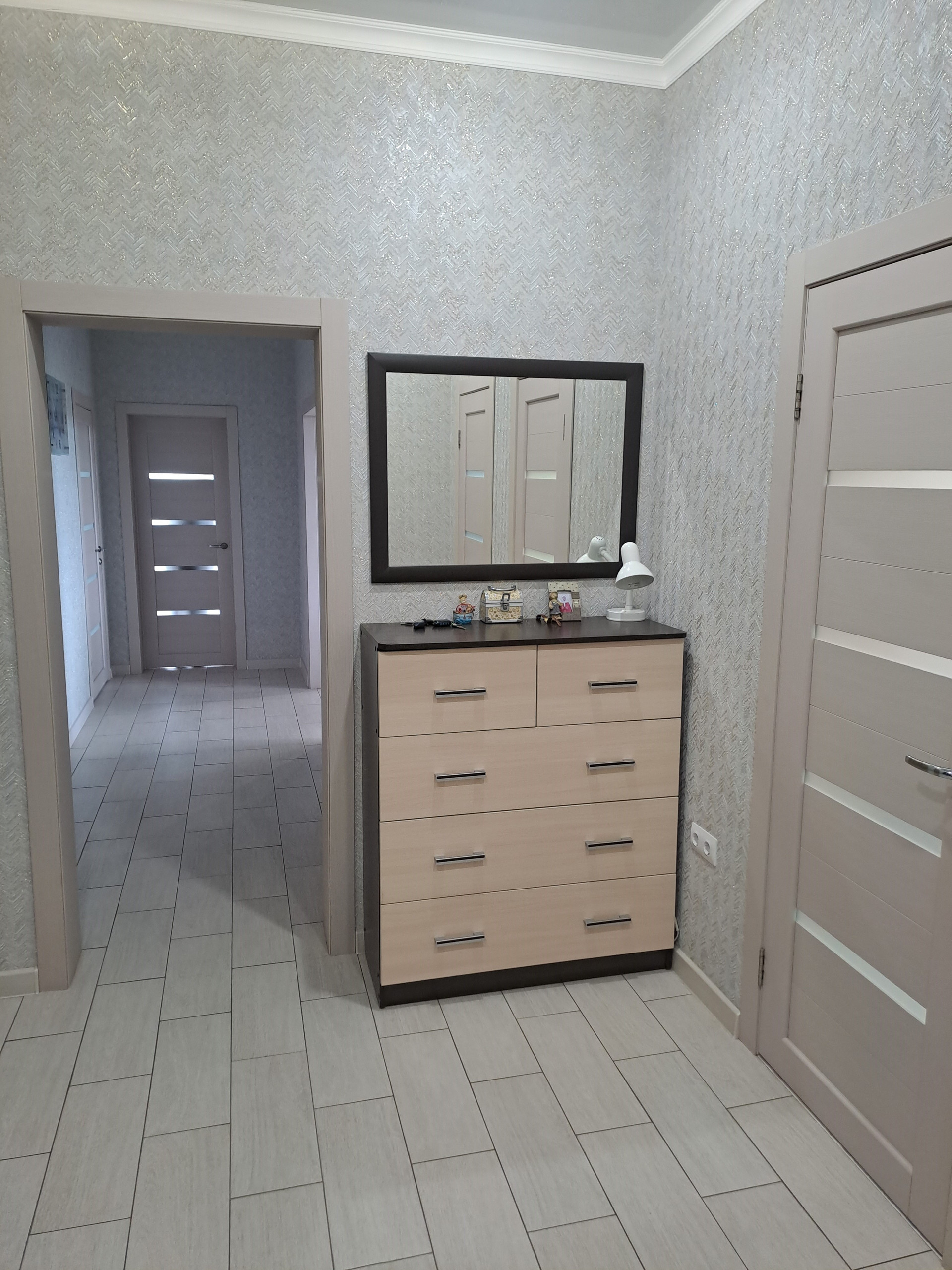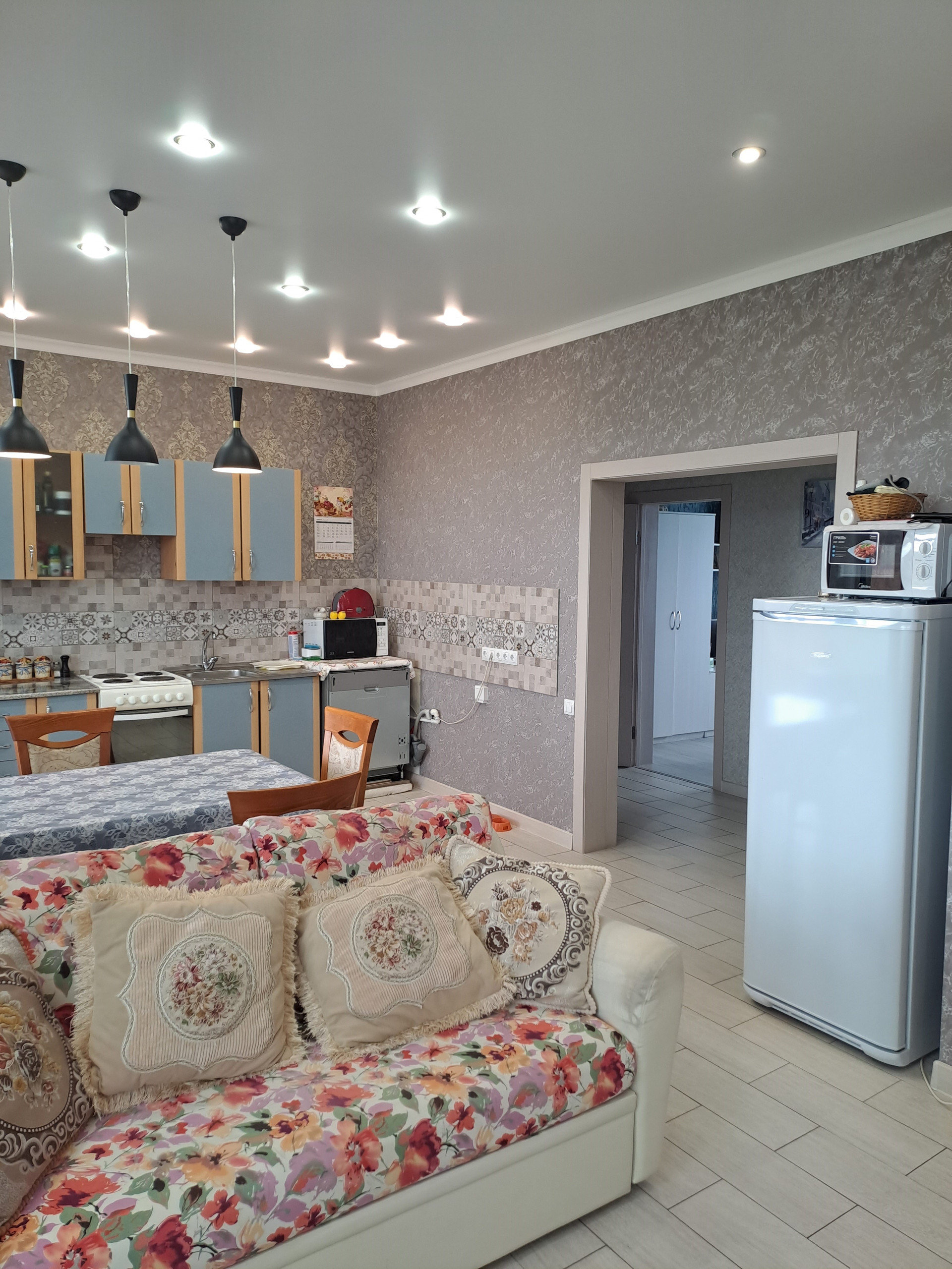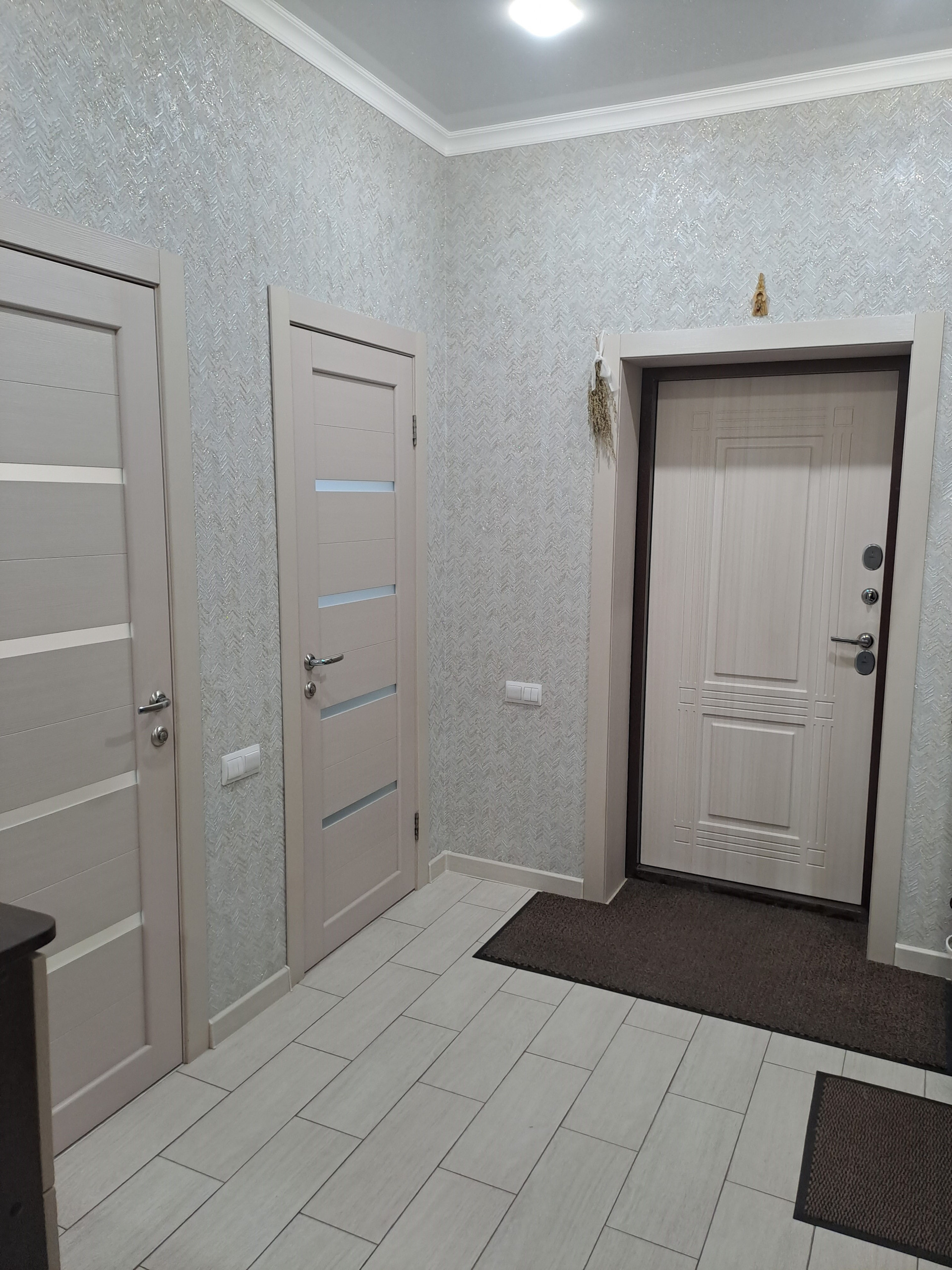 Дом 2020 года, одноэтажный, построен из арболитовых блоков, снаружи оштукатурен теплой штукатуркой (перлит+цемент толщиной 5см), отделан декоративной штукатуркой короед  и покрашен. Плитный фундамент с усилением. Внутри сделан качественный косметический ремонт: потолки натяжные, на стенах обои, полы с подогревом, окна ПВХ. Санузел раздельный, в кафеле.