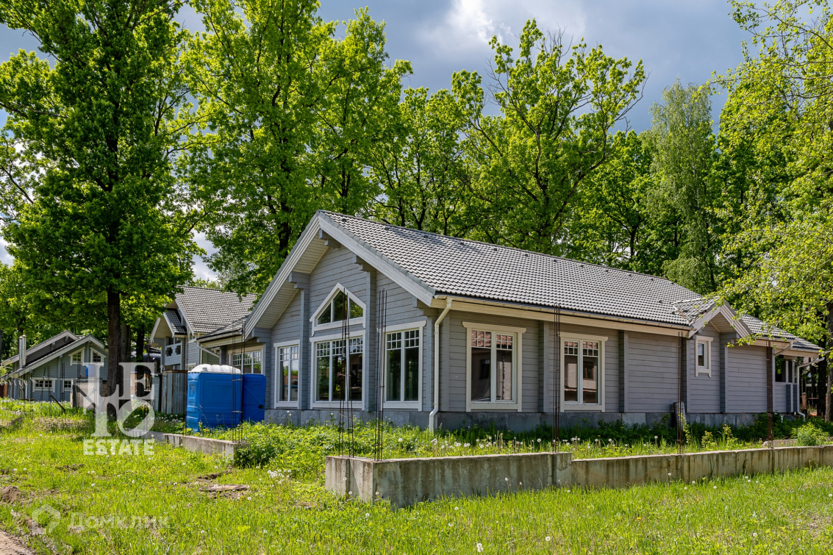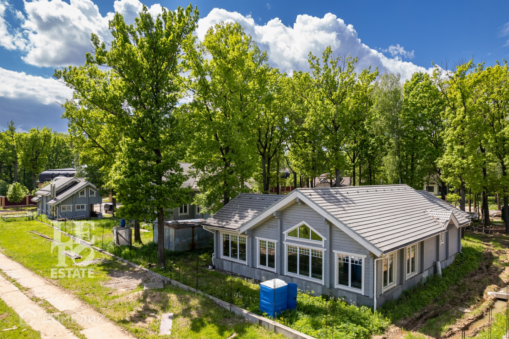 Все строения выполнены из клеёного бруса (5 ламелей), обработаны антисептическим раствором и покрашены снаружи. В домах установлены дорогие деревянные окна, заведены все центральные коммуникации, подключен газ.
