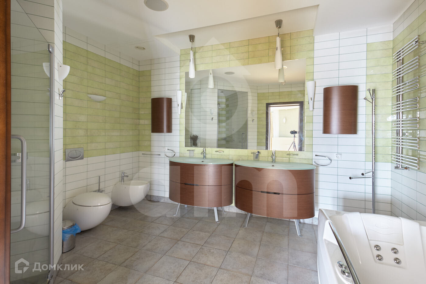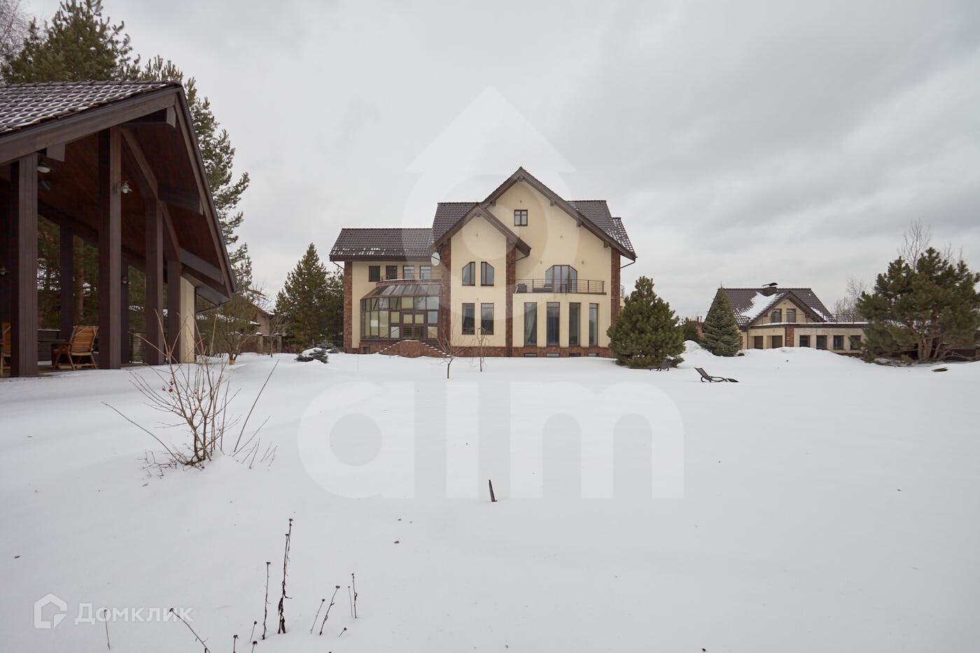На территории участка в 17 соток расположены два дома - основной (929,8 кв.м.) и гостевой дом (196,3 кв.м.) с двумя гаражами. Отделка - высококачественные натуральные материалы - мрамор на полу, панели и лестницы из массива дорогих пород дерева, тройные стеклопакеты. Дом оборудован системой умный дом. На участке зона барбекю, шезлонги, ухоженный газон, кустарники и цветы.