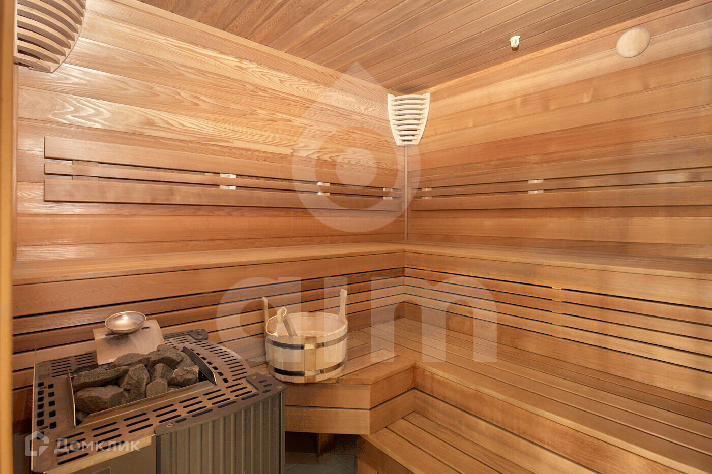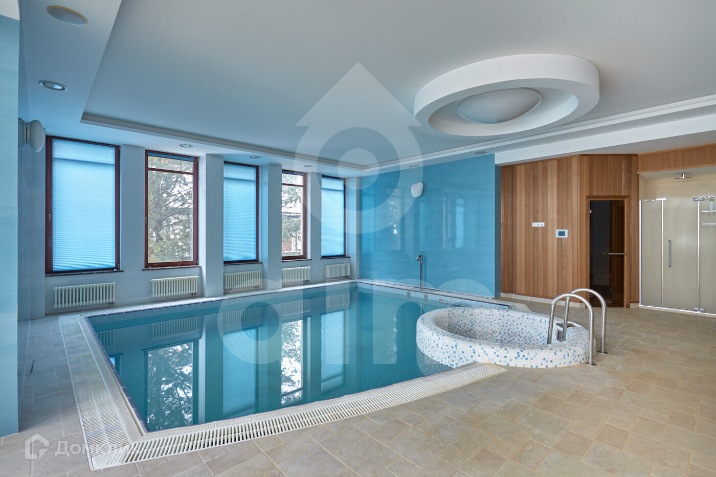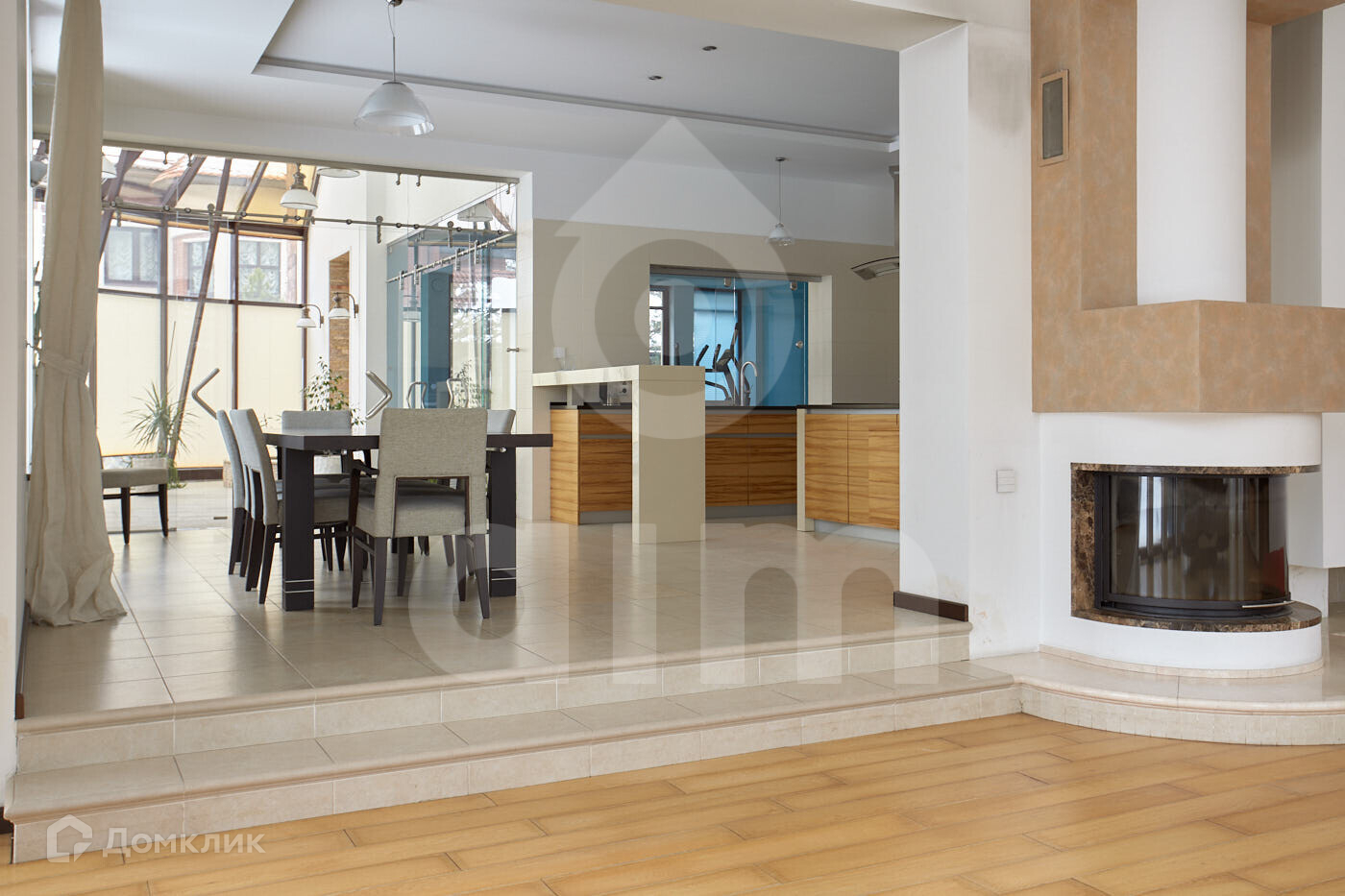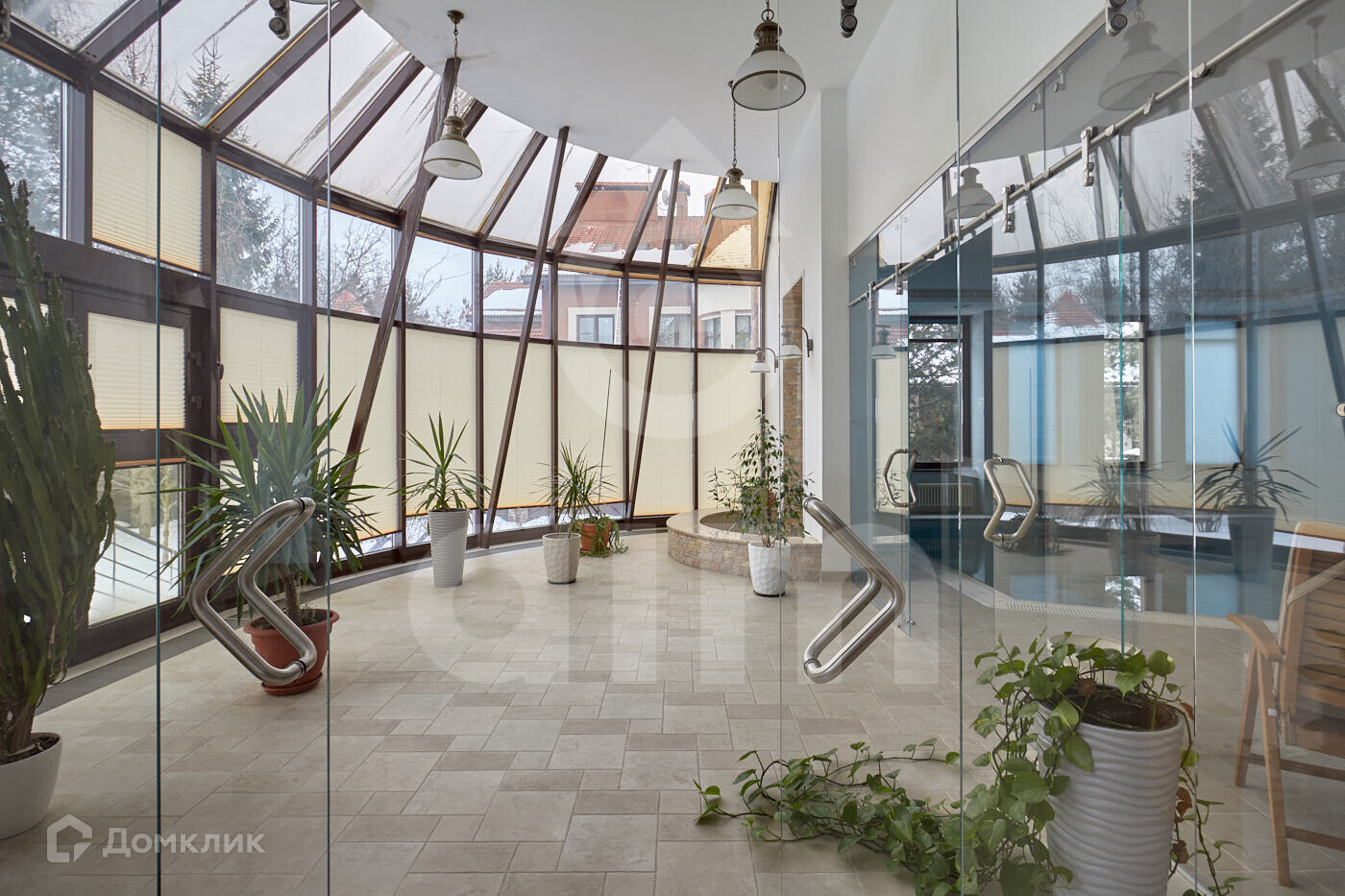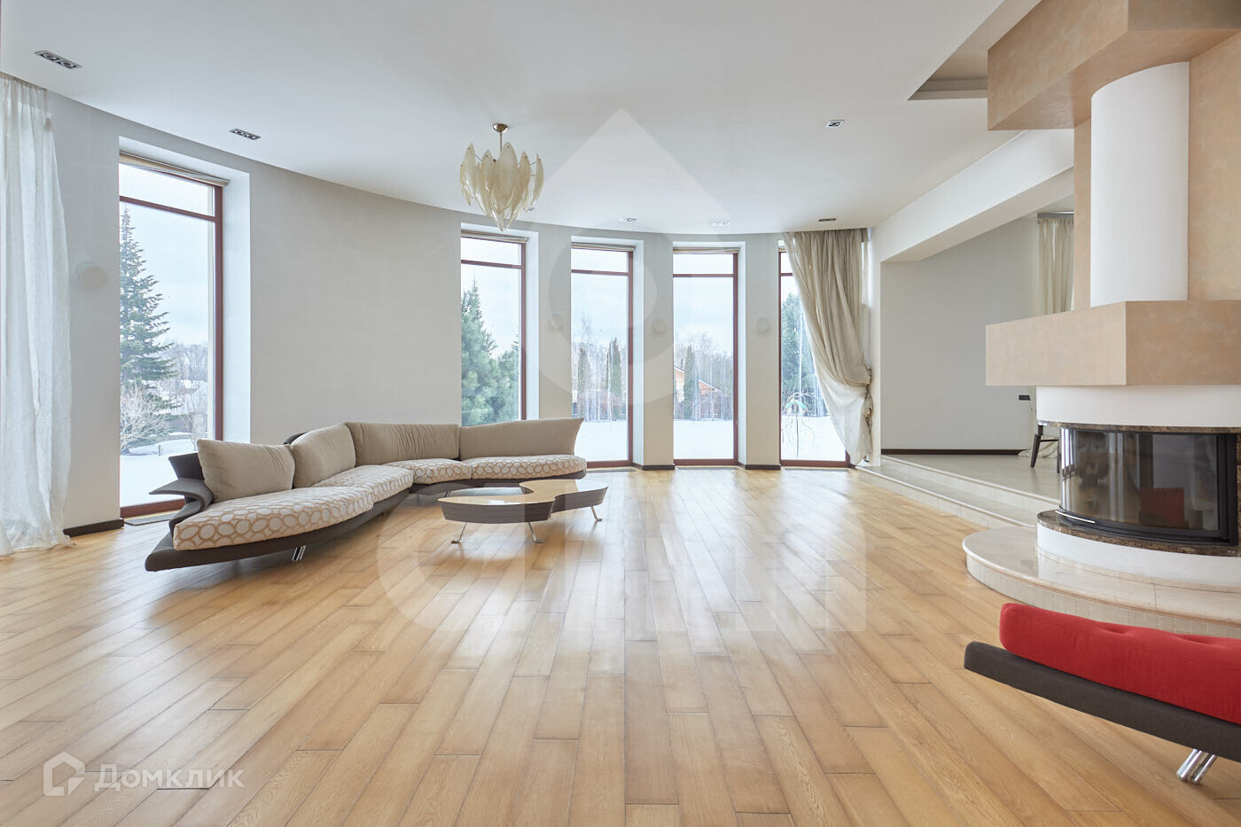 1 этаж: сауна, бассейн с купелью, зимний сад, кухня, полностью оборудованная бытовой техникой, гостиная, действующий камин. Все окна панорамные и имеют великолепный вид на взрослые деревья - кедры, сосны, ели.