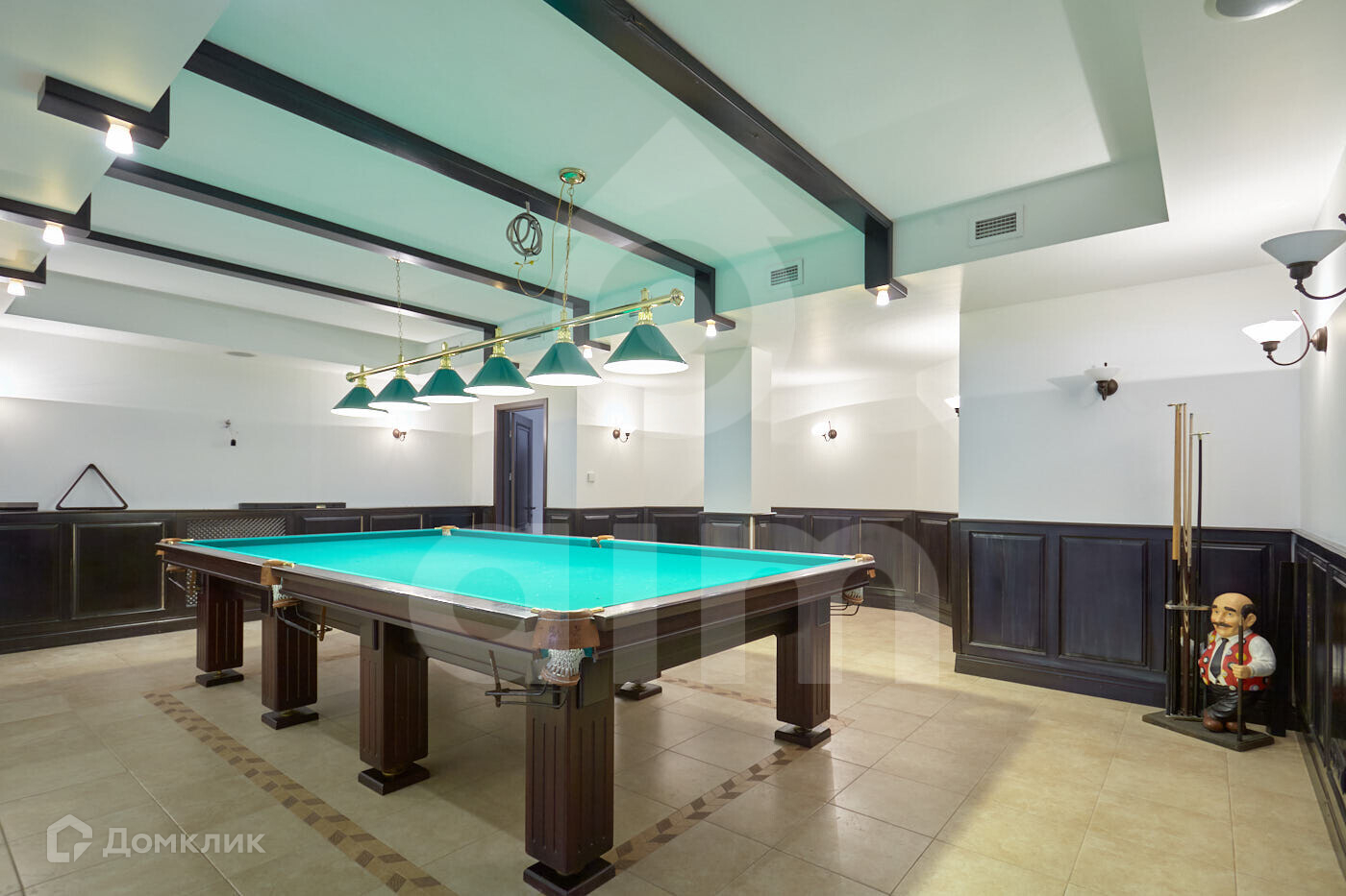 Цоколь: бильярдная комната, домашний кинотеатр, действующий камин, гараж, постирочная, гардеробная, а также технические помещения.