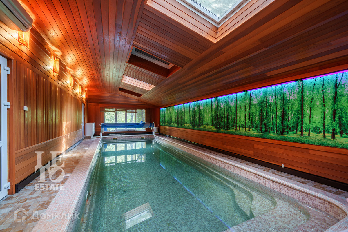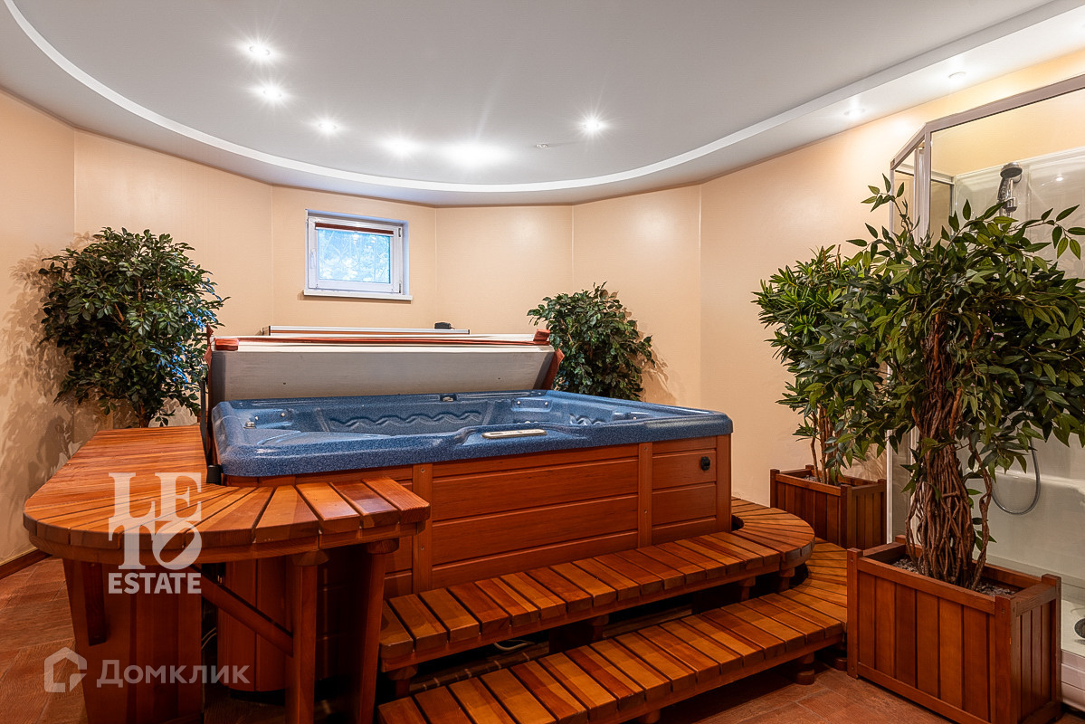 Классическая дровянная баня площадью 110м2, построенная из оцилиндрованного бревна с вместительной парной комнатой, зоной отдыха и двумя бассейнами: крытым внутри помещения и открытым с подогревом на улице, который можно эксплуатировать и в зимний сезон.