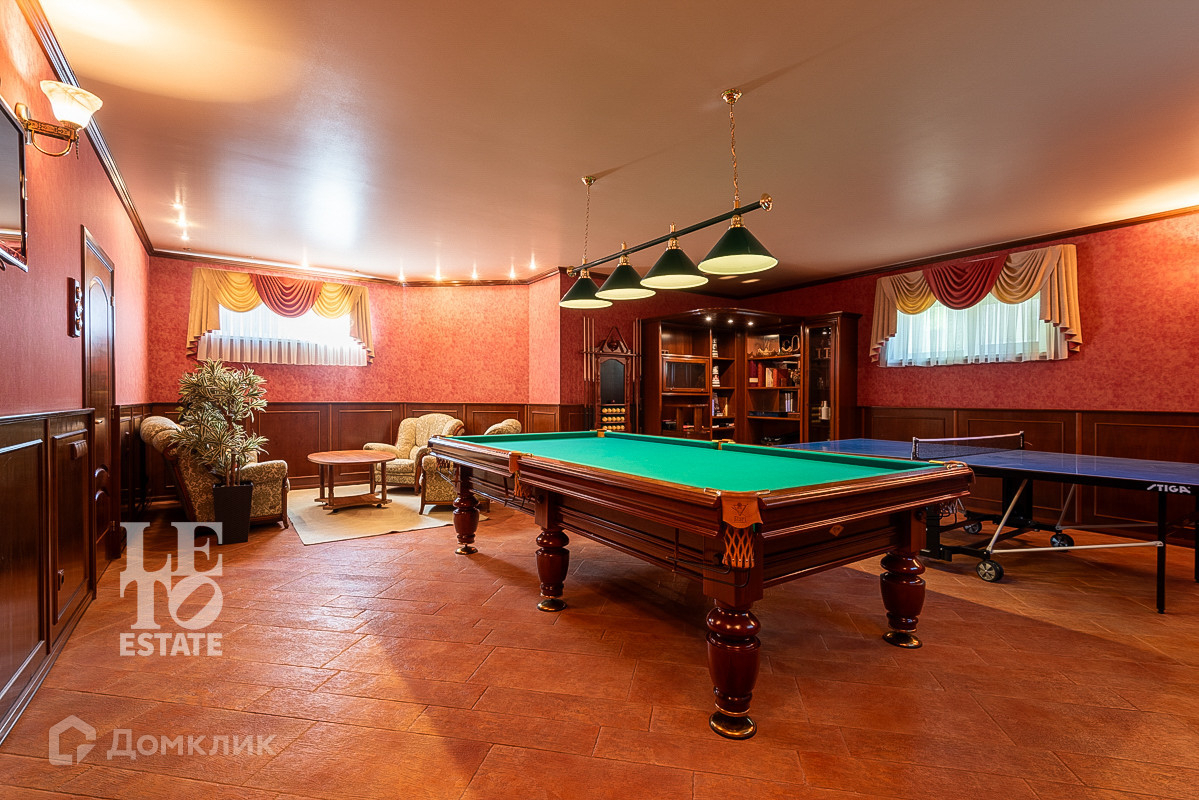 При ремонте использовались качественные дорогие материалы: в дизайне кабинета и бильярдной комнаты использовано натуральное дерево, что придает помещениям статусности и брутальности.