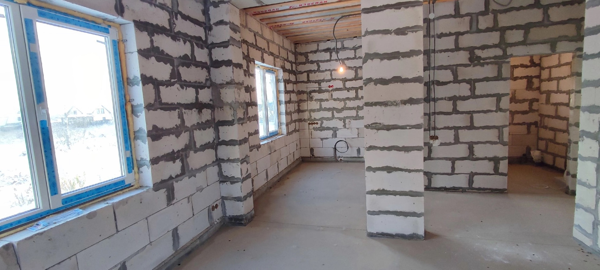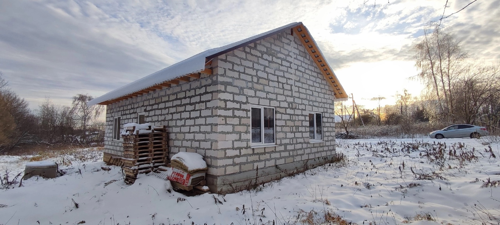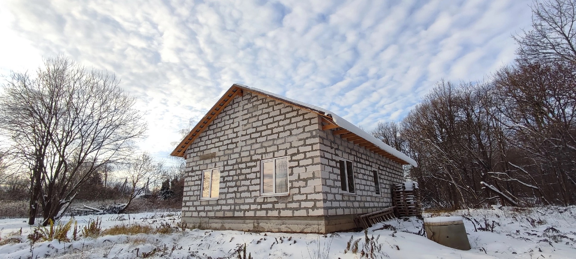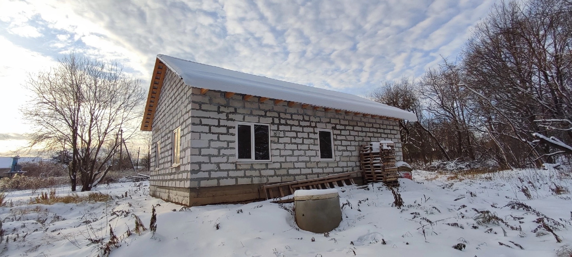 Стены газобетон, крыша металлочерепица, стоят качественные пластиковые окна, по всему дому установлен тёплый пол Rehay,  полностью разведена вся электрика, стоит бойлер на 100литров с горячей водой , электрокотел proterm работает в доме тепло, даже на минимальной температуре, также есть колодец и септик переливной всё заведено в дом и работает , высокие потолки 3метра.