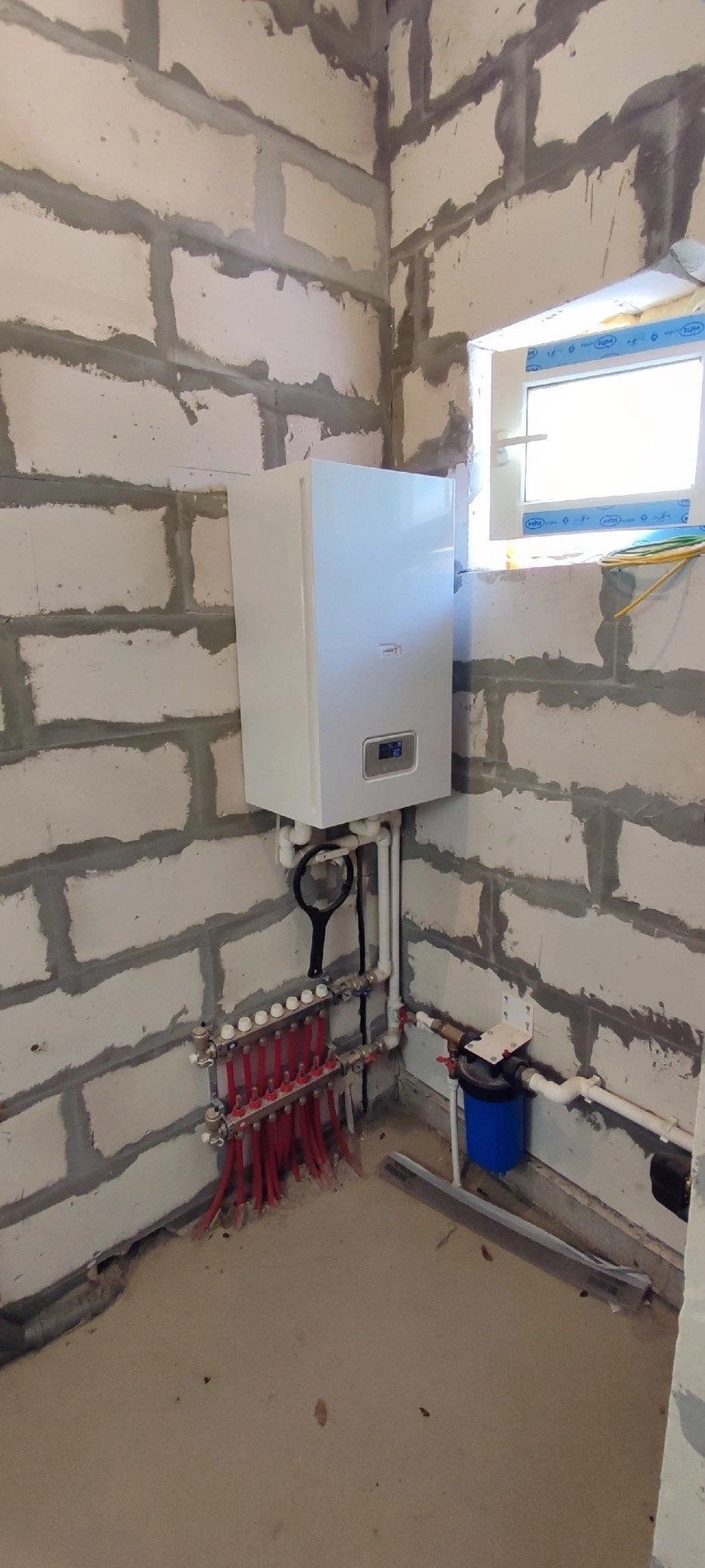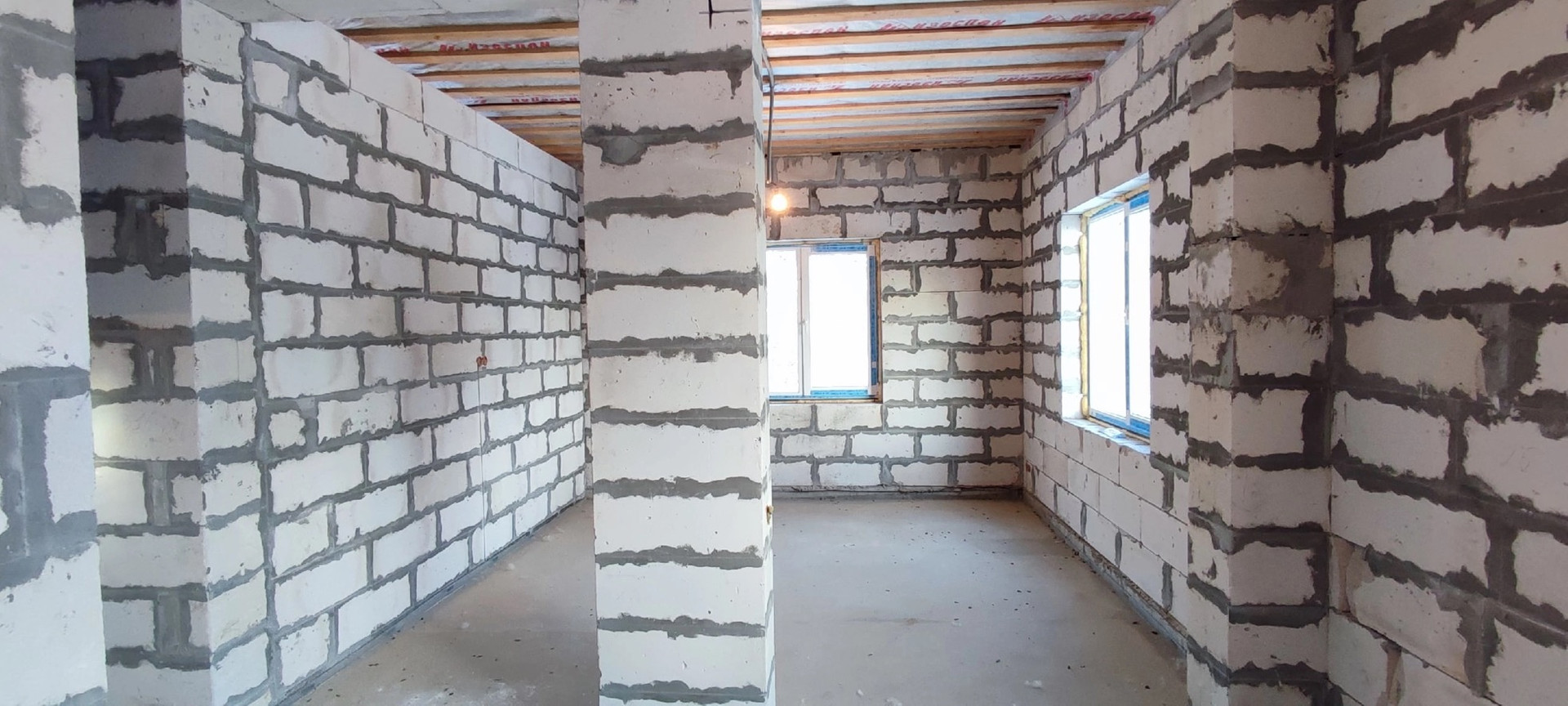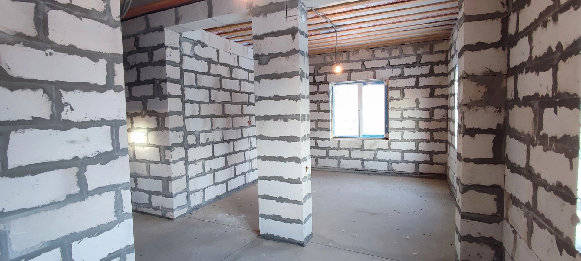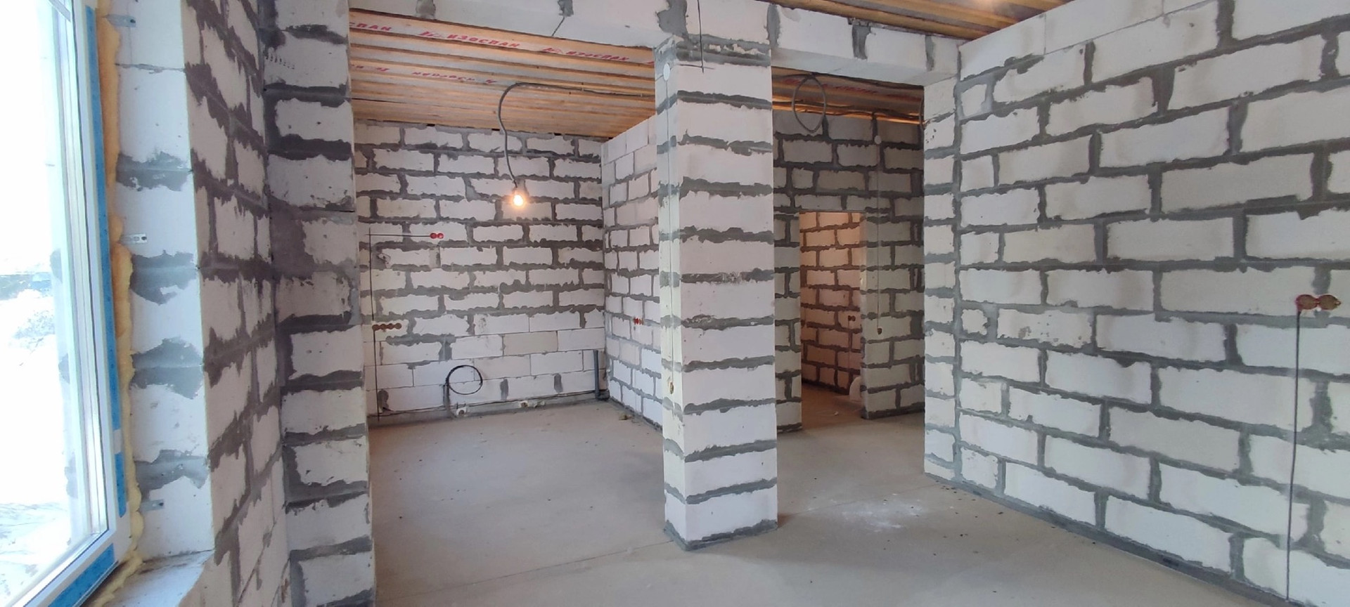 Стены газобетон, крыша металлочерепица, стоят качественные пластиковые окна, по всему дому установлен тёплый пол Rehay,  полностью разведена вся электрика, стоит бойлер на 100литров с горячей водой , электрокотел proterm работает в доме тепло, даже на минимальной температуре, также есть колодец и септик переливной всё заведено в дом и работает , высокие потолки 3метра.