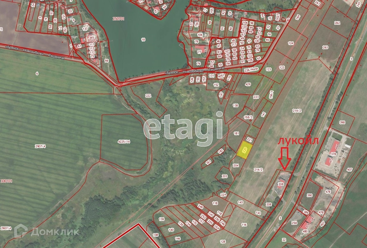 Участок назначения ЛПХ вдоль недалеко от трассы Брянск-Новозыбков (земли бывшего СПК "Культура" в 550 м южнее н.п.Тешеничи). Если ехать по трассе из Брянска, то участок находится в 100 метрах слева от асфальта, который идет к озеру. К самому участку тянется полевая грунтовая дорога. Сам участок ровный прямоугольный, стоит на возвышенность и с него открывается красивый вид на холмы, лес и поля. Газ от края участка находится метрах в 200. Свет рядом. При желании можем разделить и продать нужную площадь. Кадастровый номер: 32:02:0300101:220.