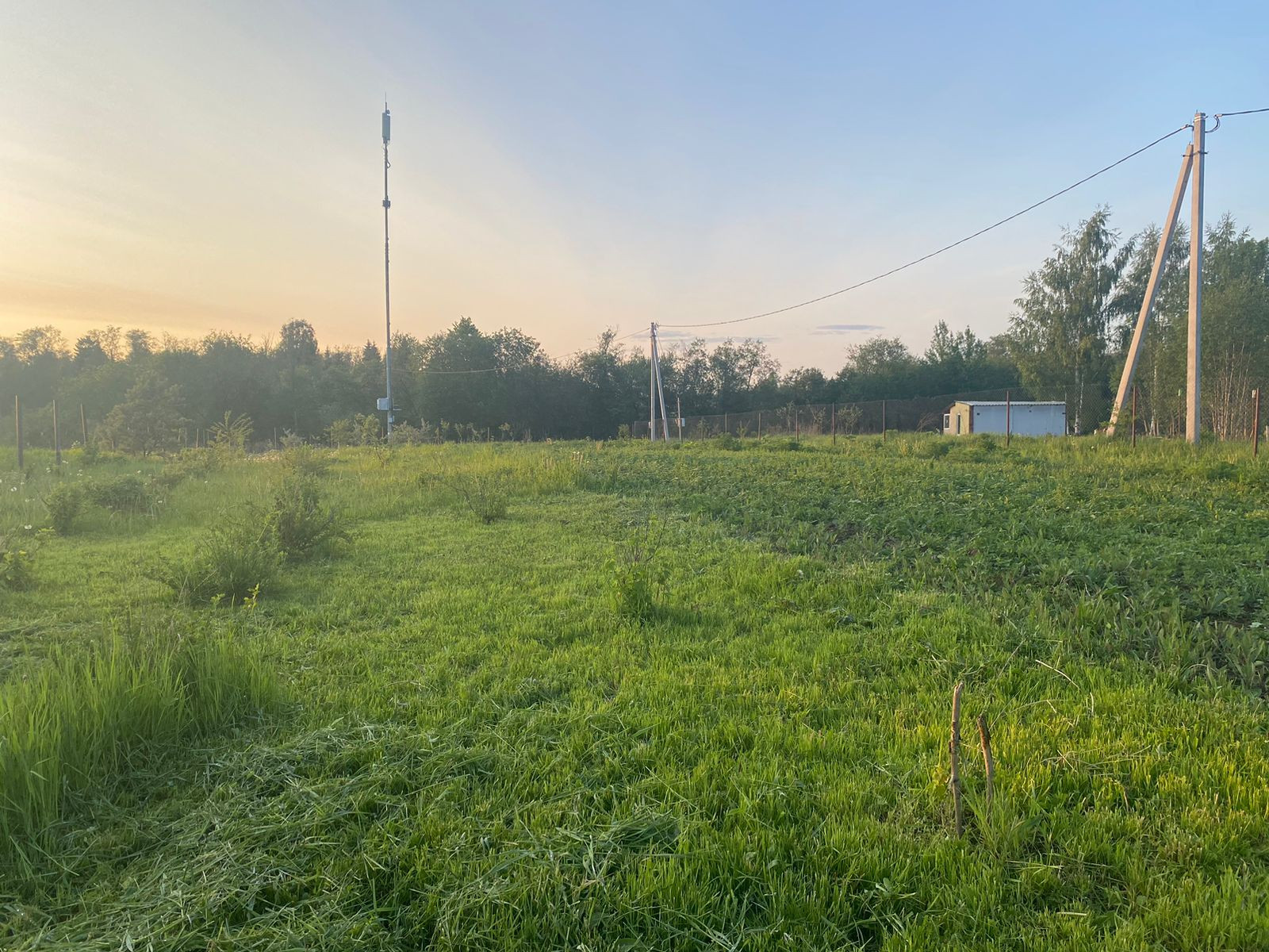 Столб по границе. Участок не огорожен, правильной формы!