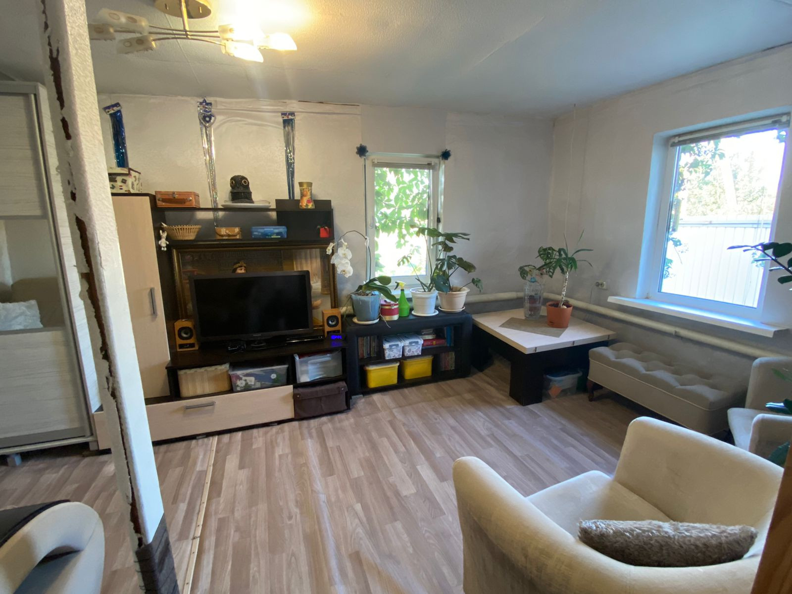 В доме сделан косметический ремонт, новый котел, "теплые полы" на кухне и ванне, пластиковые окна. Установлена душевая кабина, встроенный кухонный гарнитур.