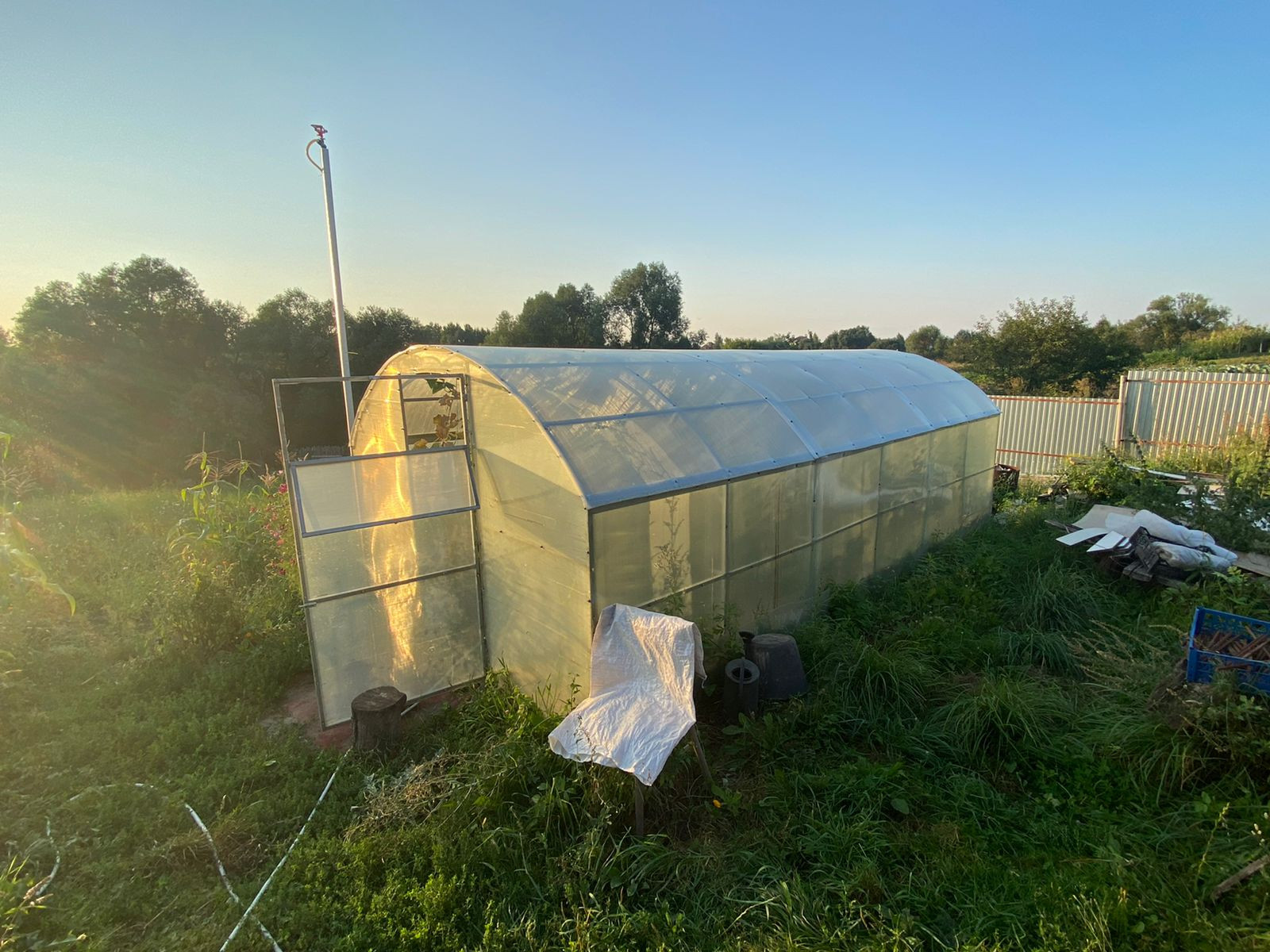 На участке площадью 20 сот расположен дом (60 м2) , крытая большая беседка, хозпостройки (курятник, летний душ, фундамент под баню 6Х8 м , теплица из поликарбоната),септик на 4 кольца, есть оборудованное машиноместо и дополнительный технический вьезд в конце участка. С двух сторон стоит забор из металлопрофиля.