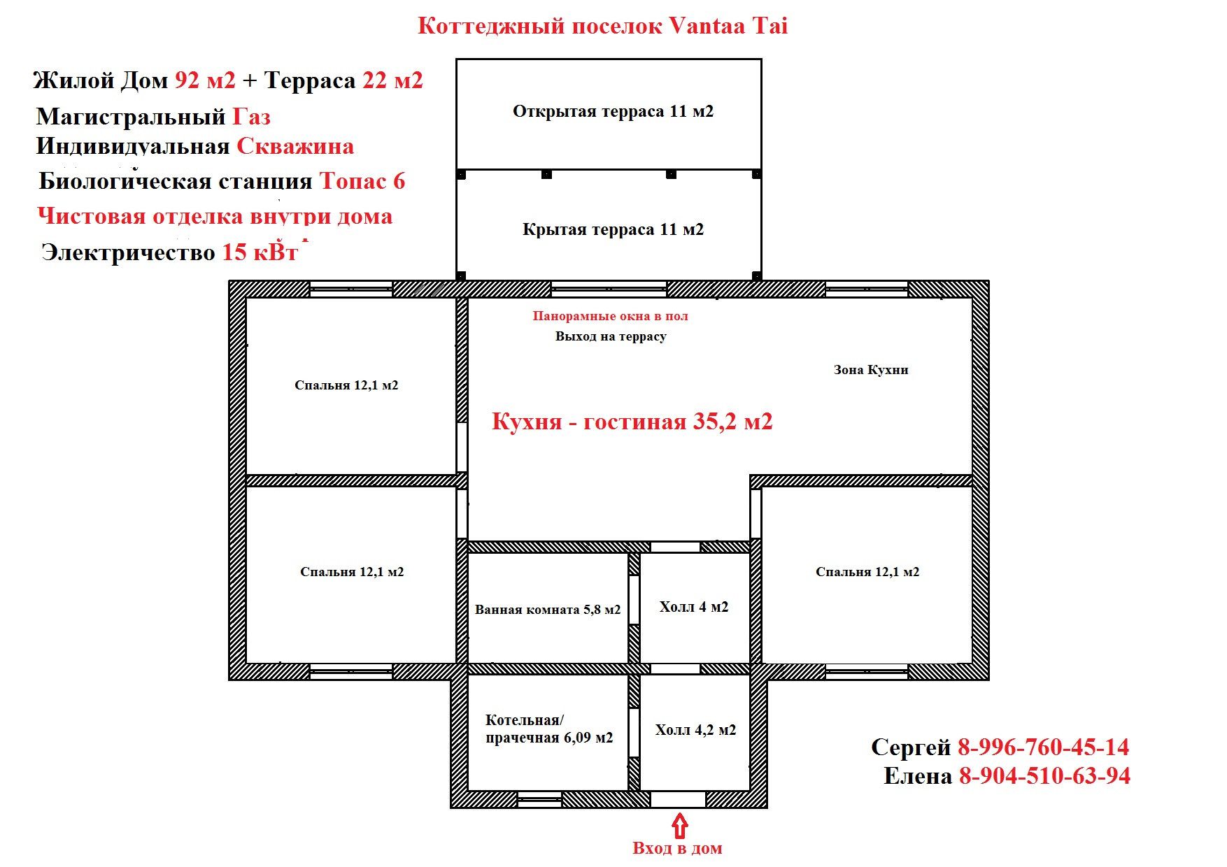 Общая площадь Дом 92 кв.м. + Терраса 22 кв.м. = 114 кв.м.