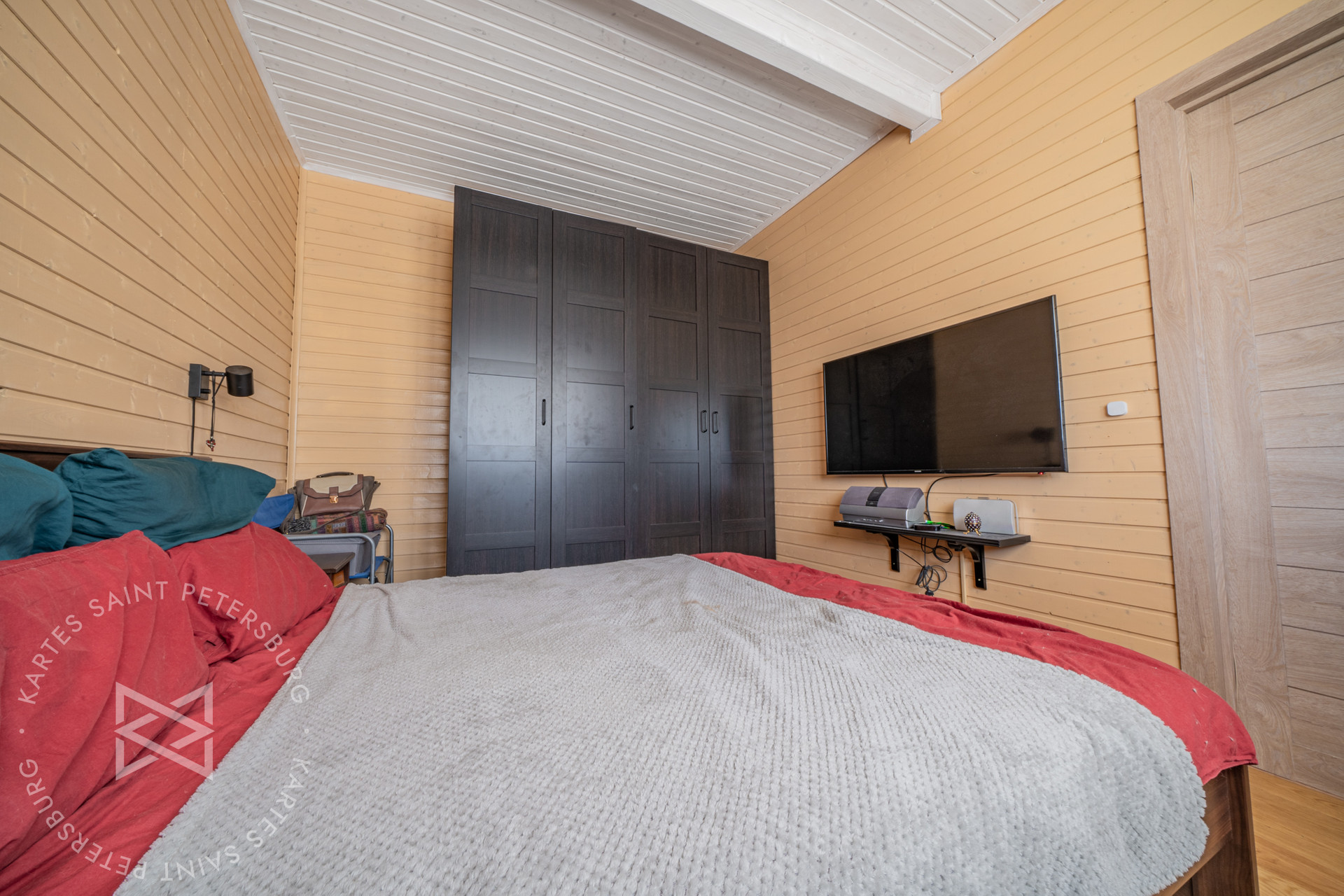 Удобная планировка (спальня изолирована от зоны активного отдыха и кухни)