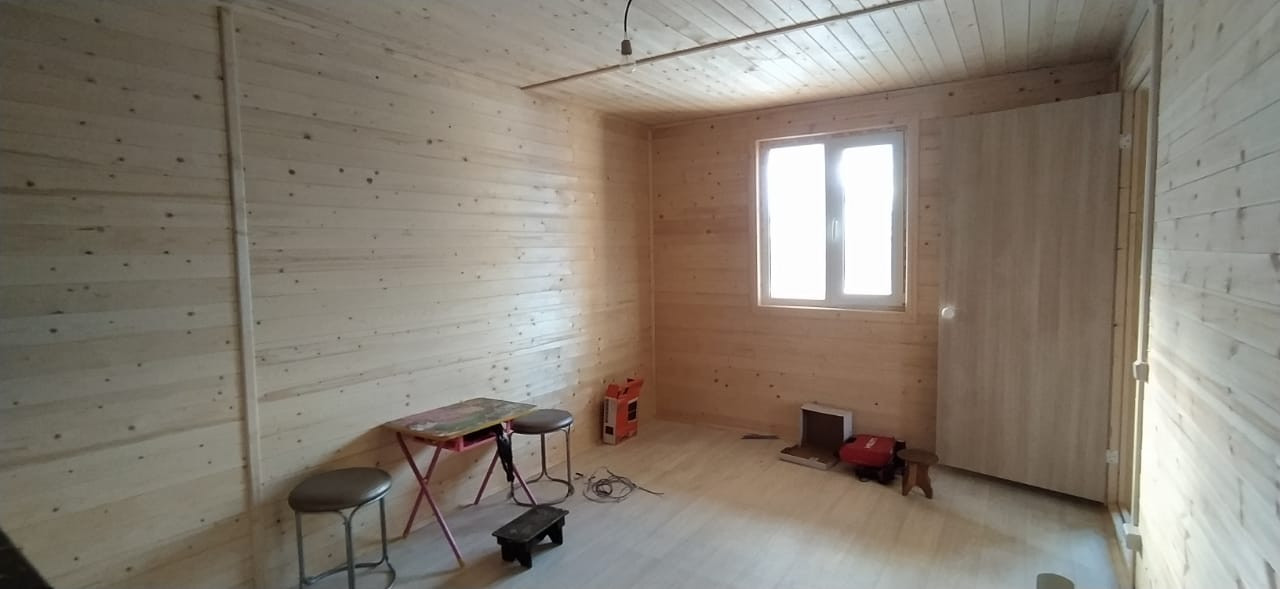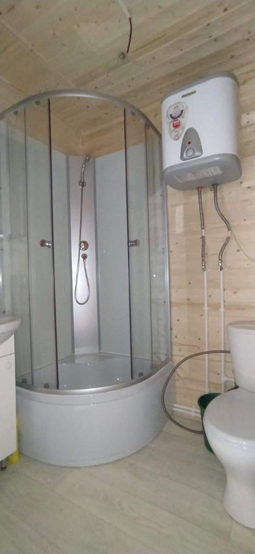 Дом теплый, есть всё необходимое для проживания - установлена кухня, сантехника (туалет, раковина, душевая кабина).