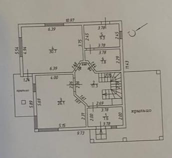 1 этаж: кухня-столовая 26,1 м кв, гостиная 30,7 м кв, санузел, бойлерная, балкон. По всему первому этажу тёплый пол ( нагрев от воды).